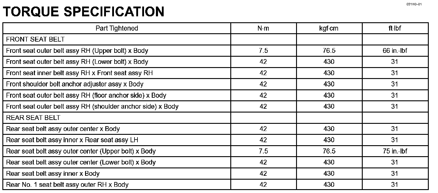 Seat Belt - Torque Specification: