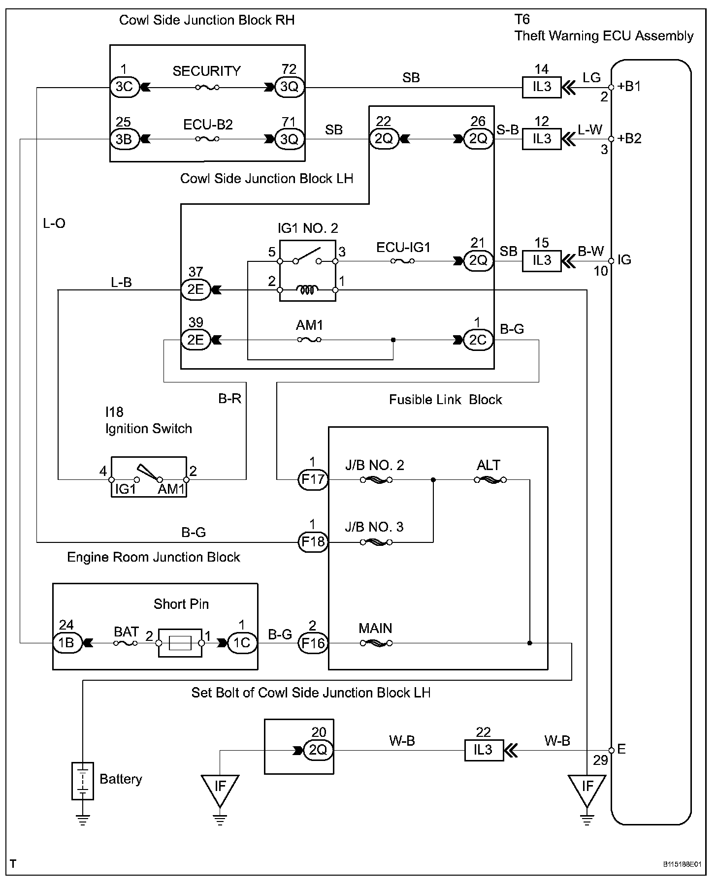 This circuit provides power to operate the theft warning ECU assembly.