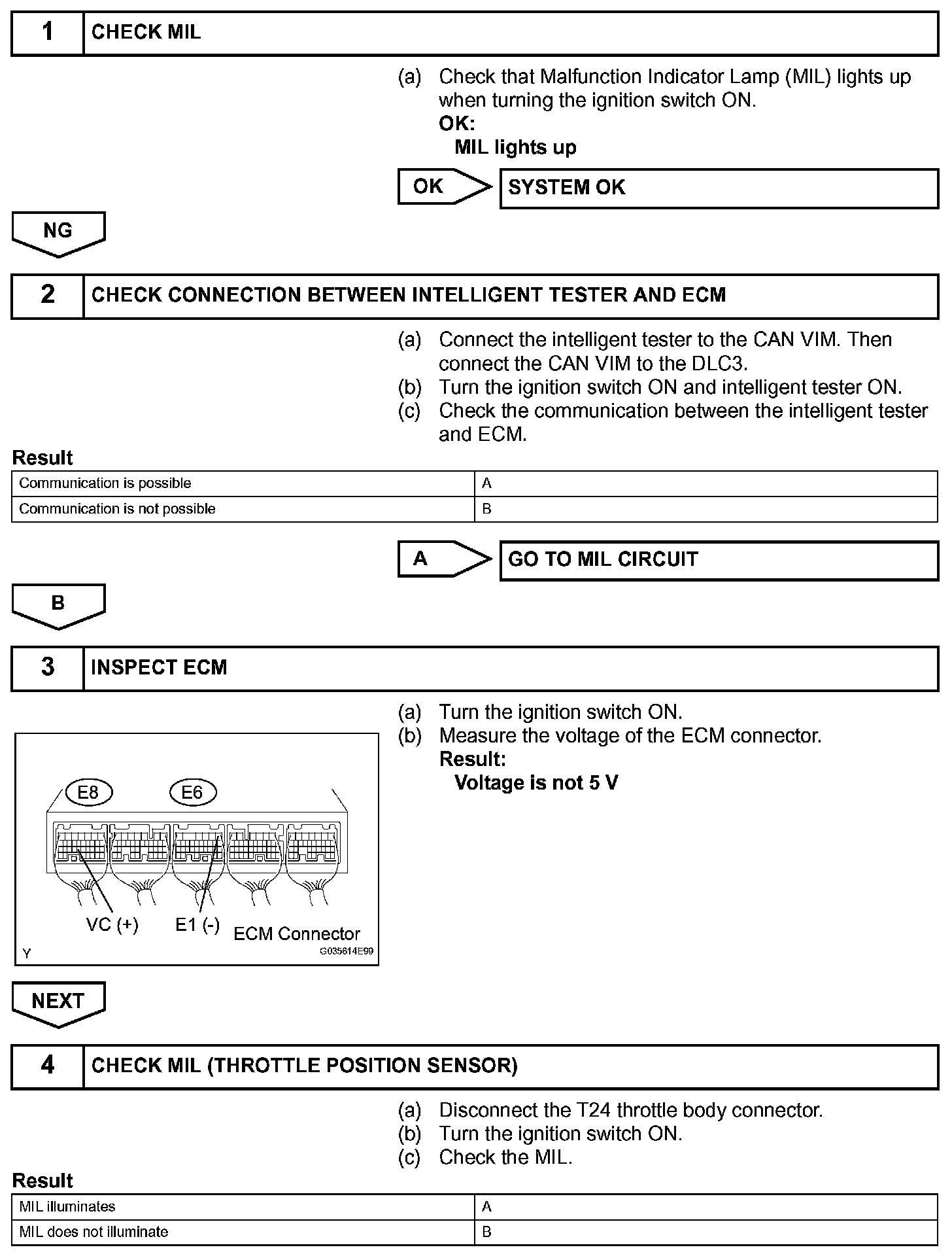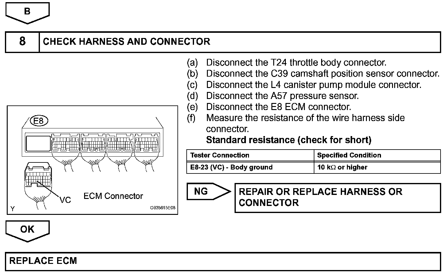 The VC voltage (5 V) is generated in the ECM. The voltage is used to supply power to the throttle position sensor, canister pump module, etc.