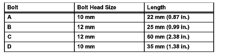 Bolts A & D 7.5 Nm (76 kgf-cm, 66 inch lbs.)
