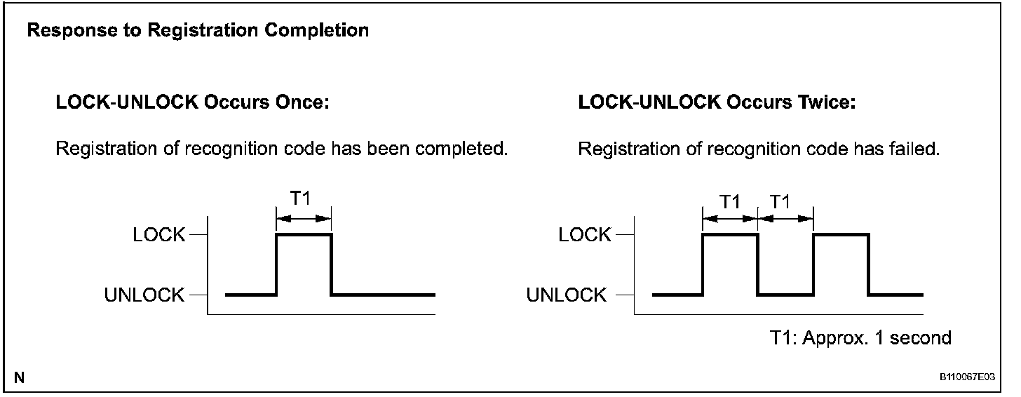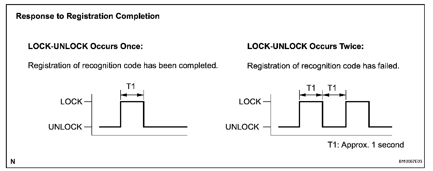 HINT: If the LOCK-UNLOCK operation is performed twice, registration of the recognition code has failed. Perform registration procedures from the beginning once again.