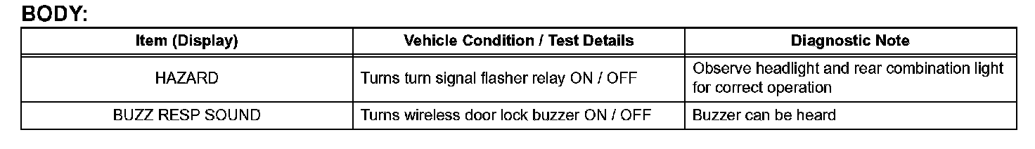c. According to the display on the tester, preform the ACTIVE TEST.