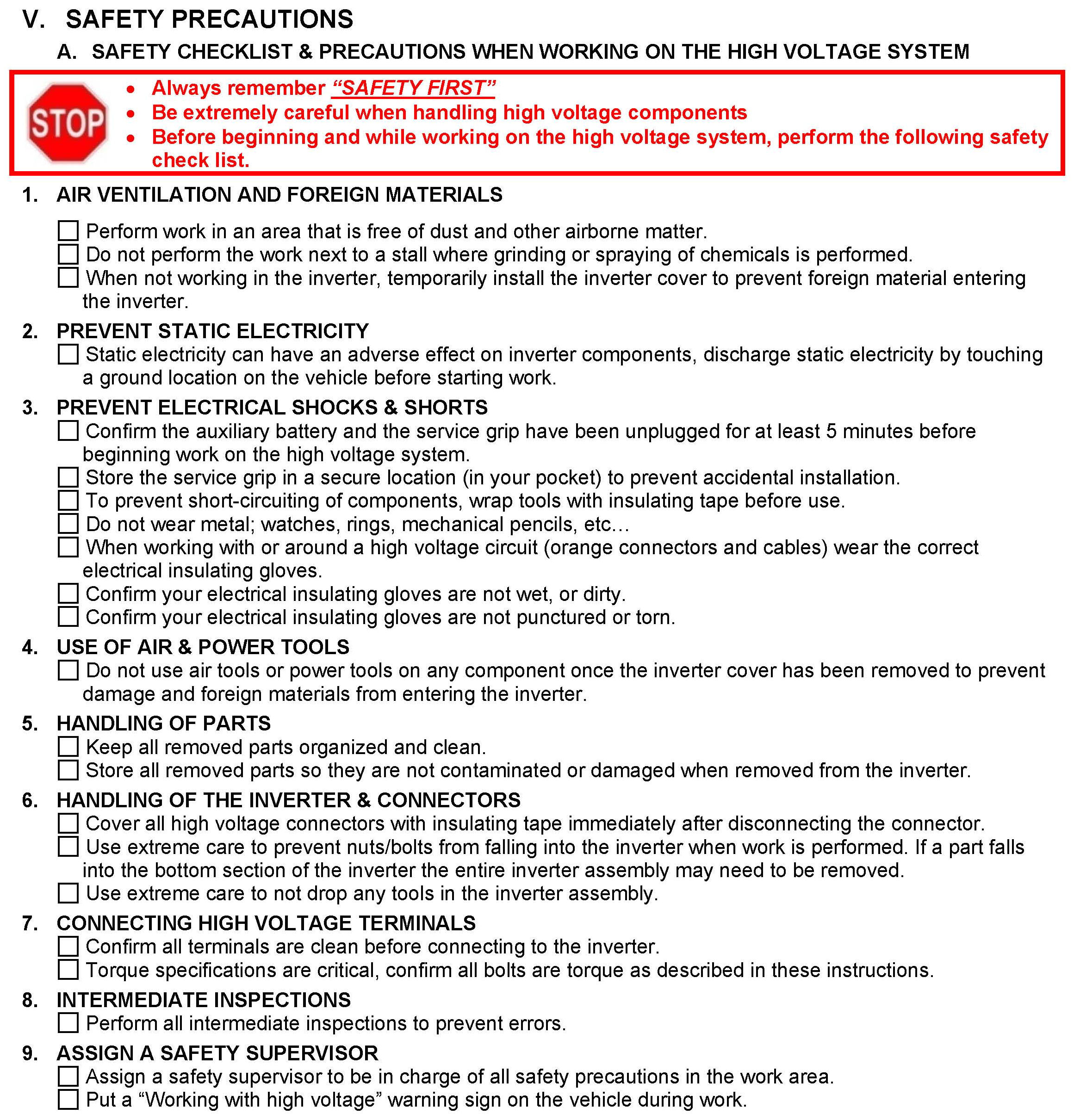 V. Safety Precautions