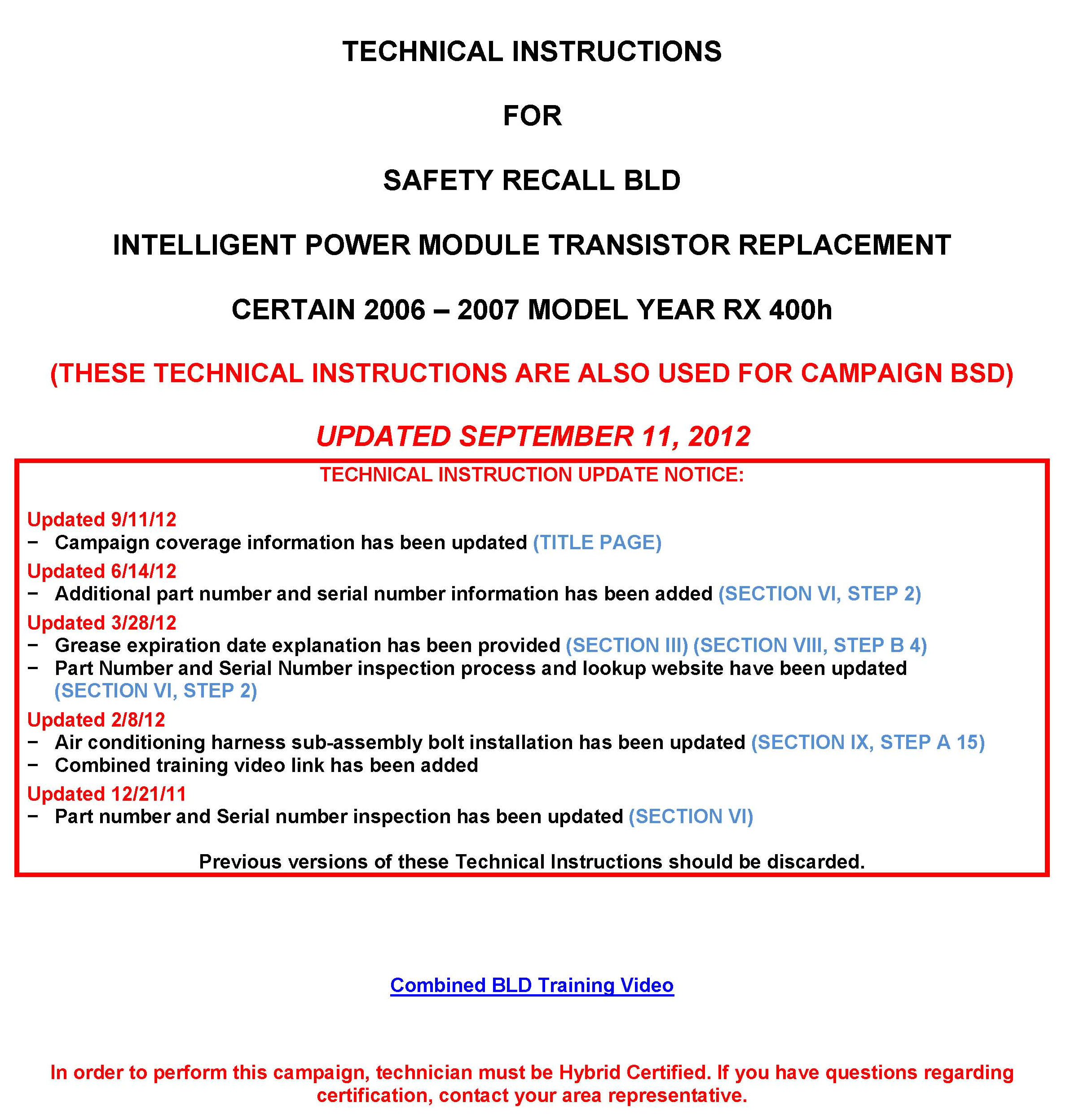 Recall - Hybrid Intelligent Power Module (IPM) Replacement
