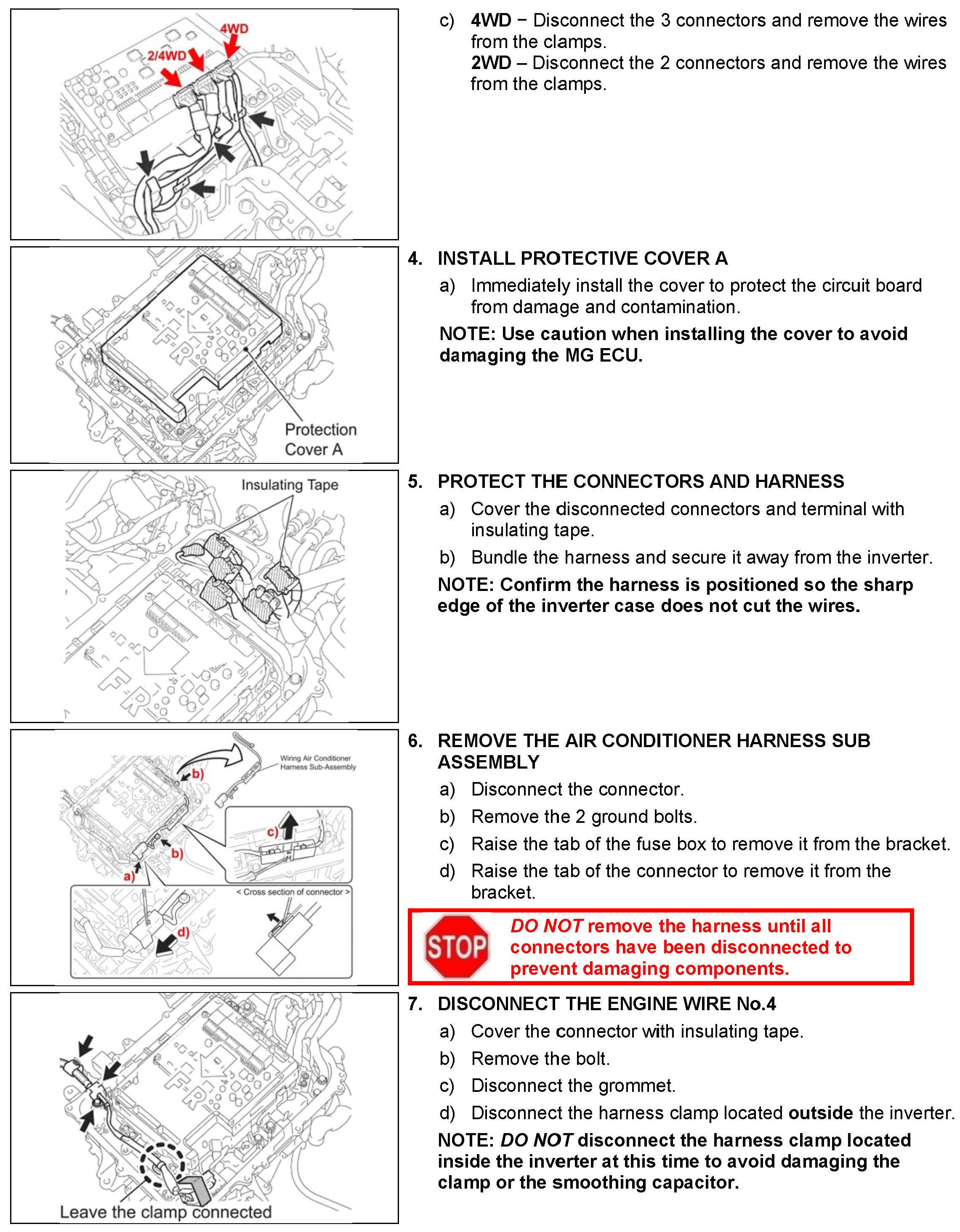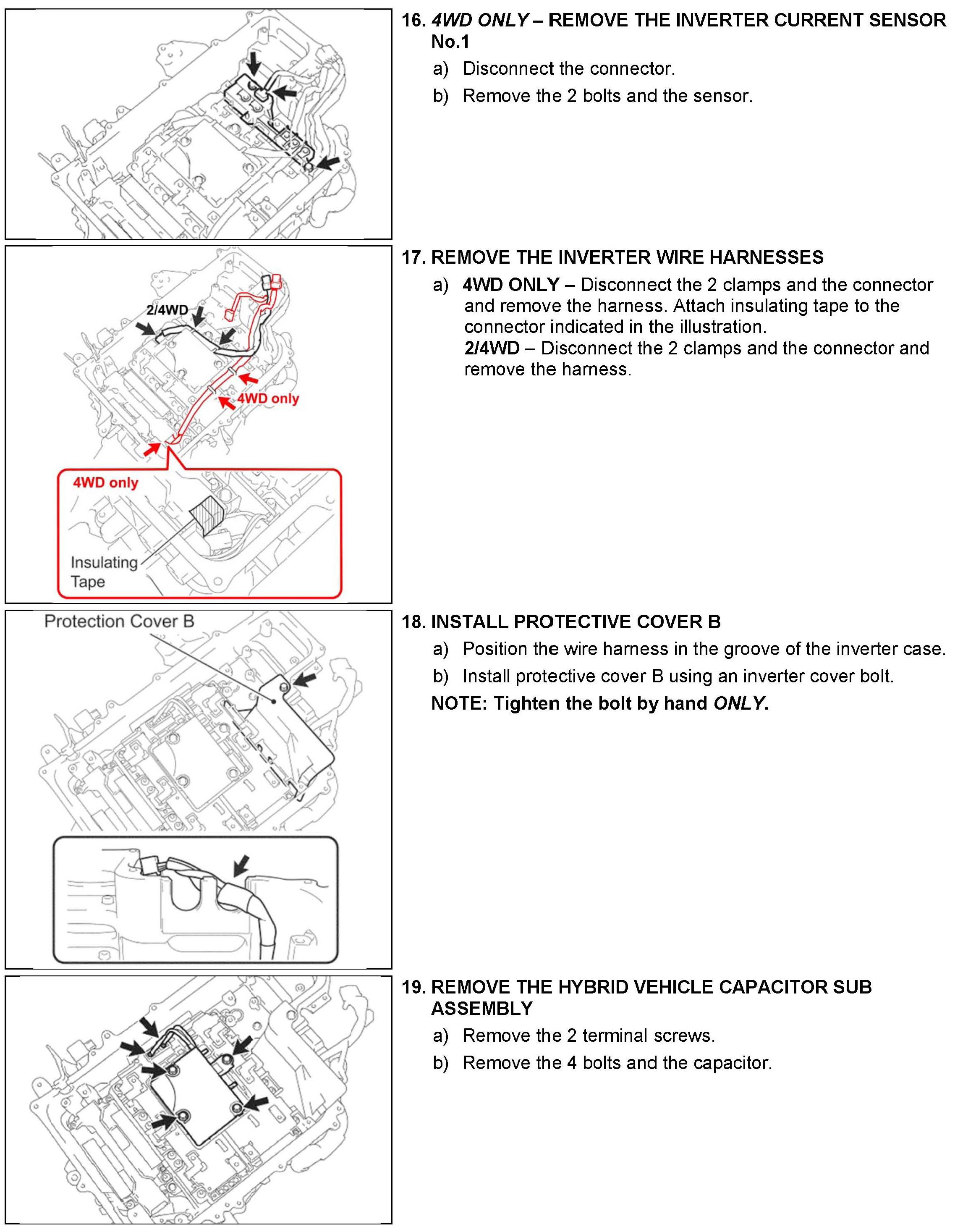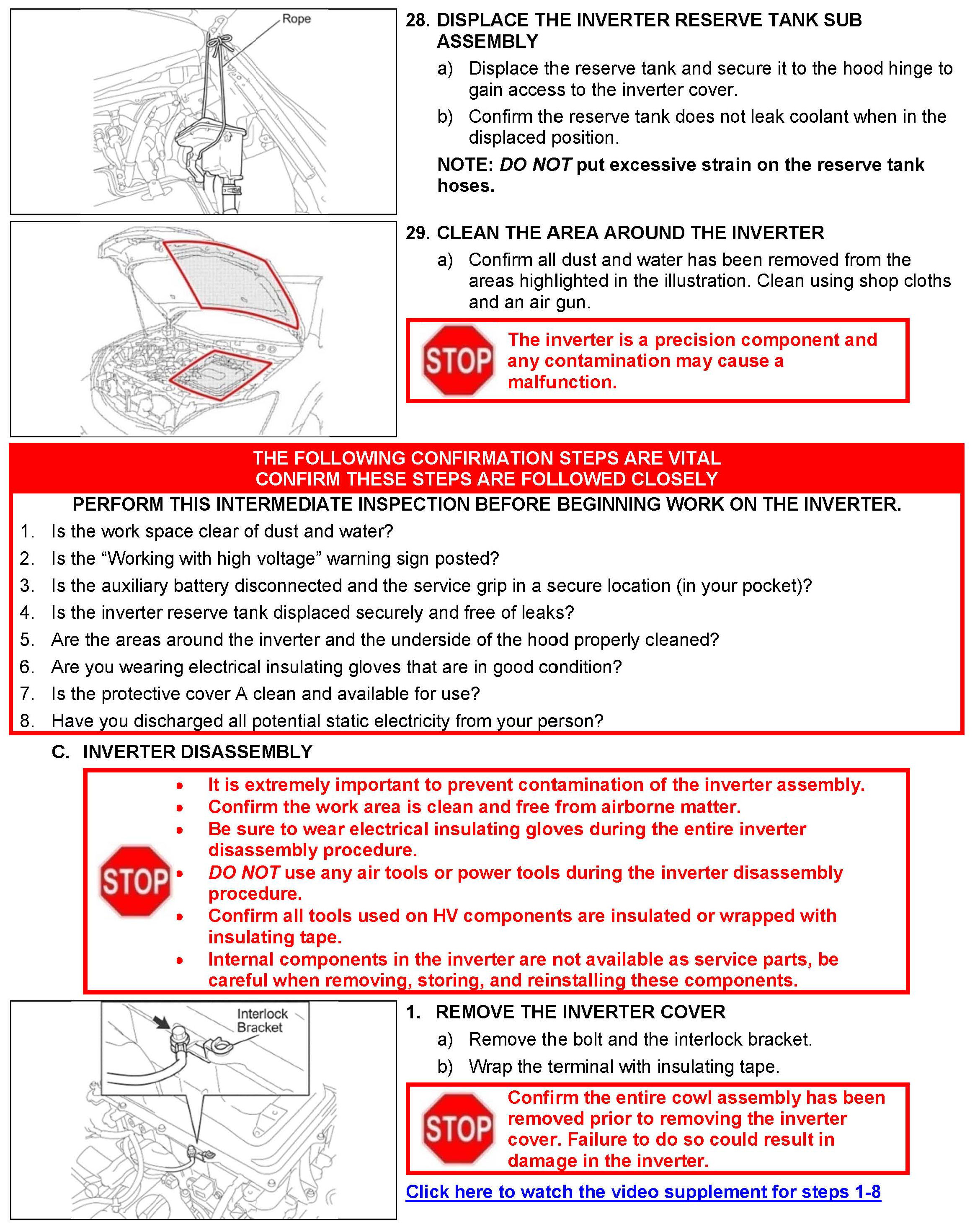 B. Vehicle Disassembly, C. Inverter Disassembly and D. Inverter Cleaning