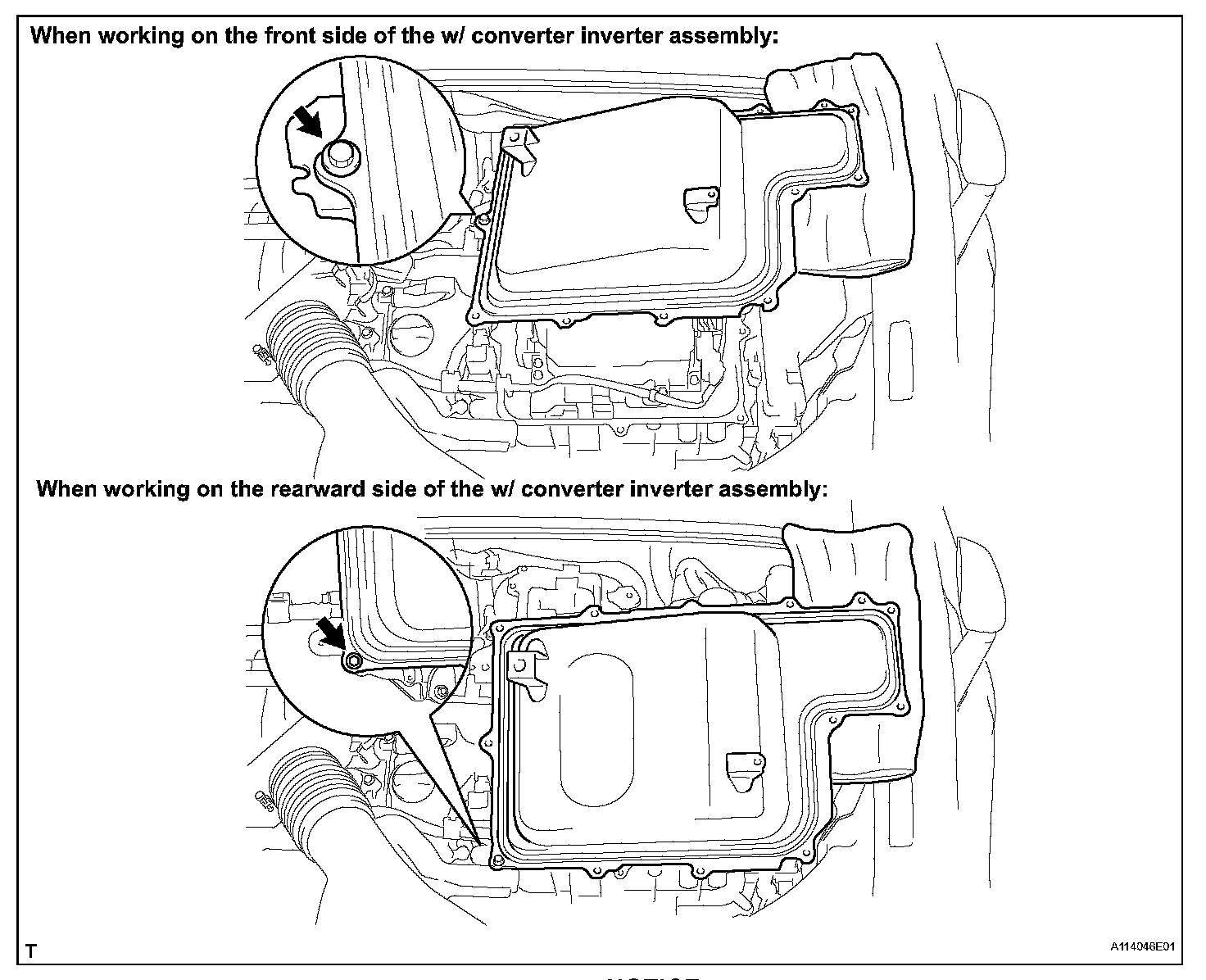NOTE: Do not put the vehicle into the READY-on state with the inverter cover removed.