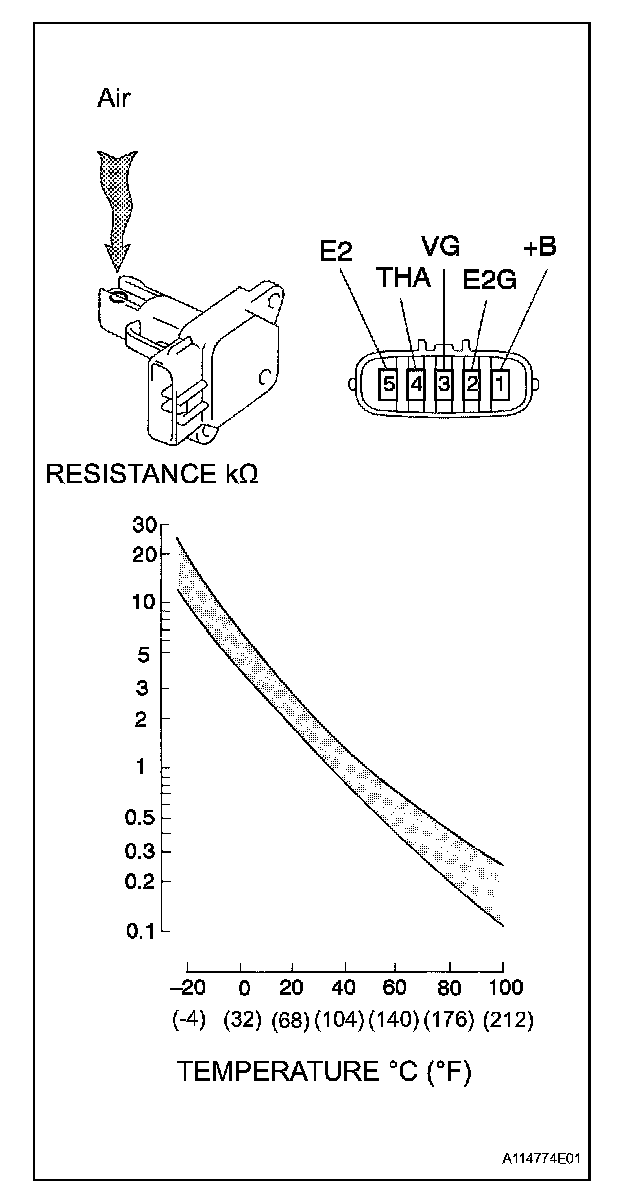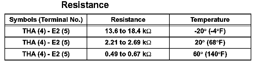 1. Using an ohmmeter, measure the resistance between terminals 4 (THA) and 5 (E2).