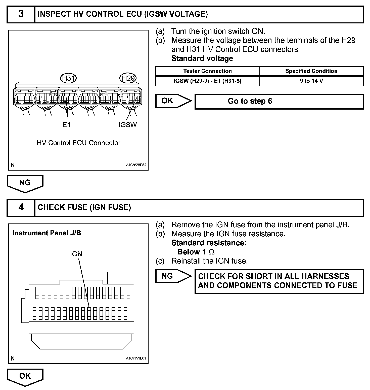 When the engine switch is turned to on, the battery voltage is applied to terminal IGSW of the ECM (Included in HV Control ECU). The ECM MREL output signal causes a current to flow to the coil, closing the contacts of the IGCT relay and supplying power to terminal +B of the ECM.