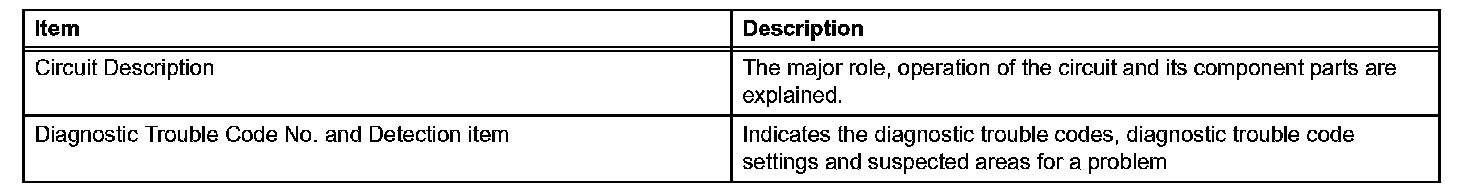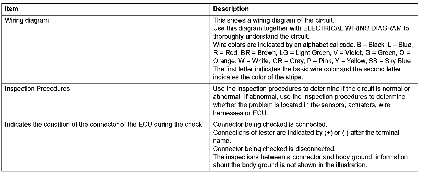 A description of the main areas of each circuit inspection is shown in the table.