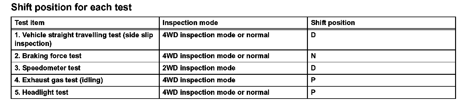 - Be sure to perform the test in the 2WD inspection mode.