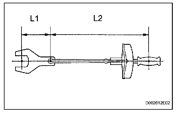 1. Use the formula below to calculate special torque values for situations where SST or an extension tool is combined with the torque wrench.