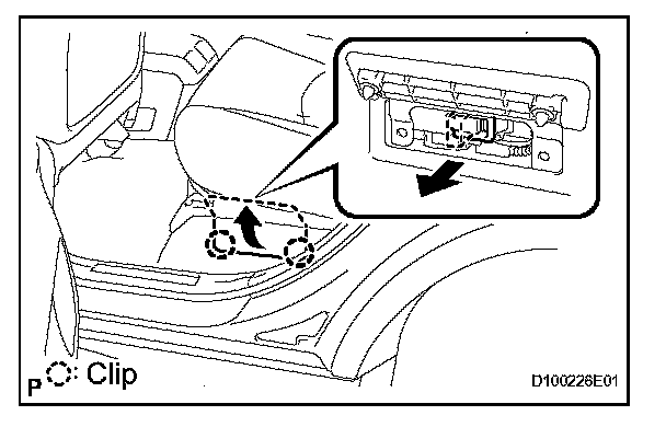 3. Remove the 2 clips and engine room cover side.