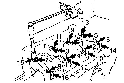 8 Main Bearing Cap Bolts w/New Seal Washers 27 Nm (275 kgf-cm, 20 ft. lbs.)