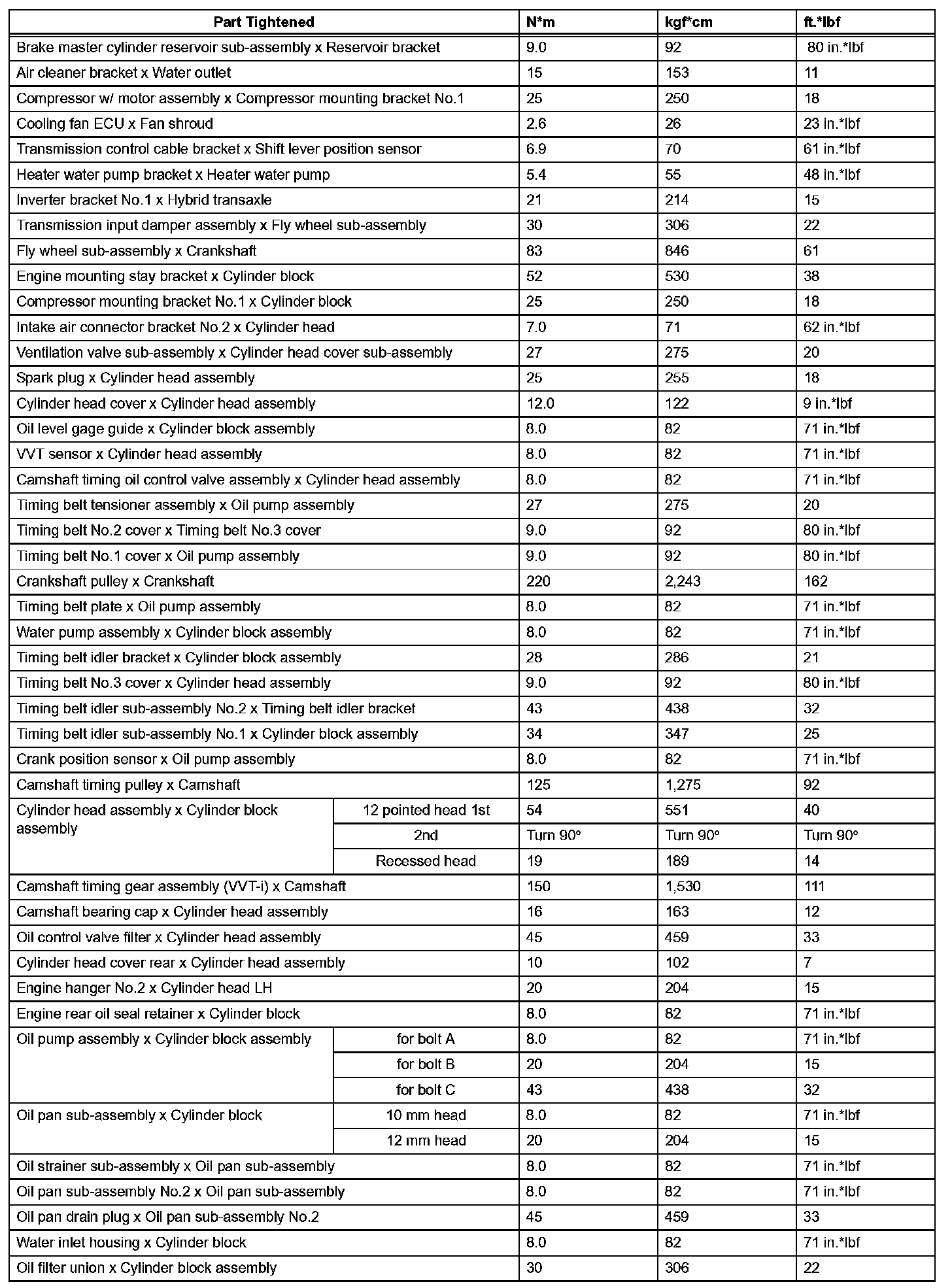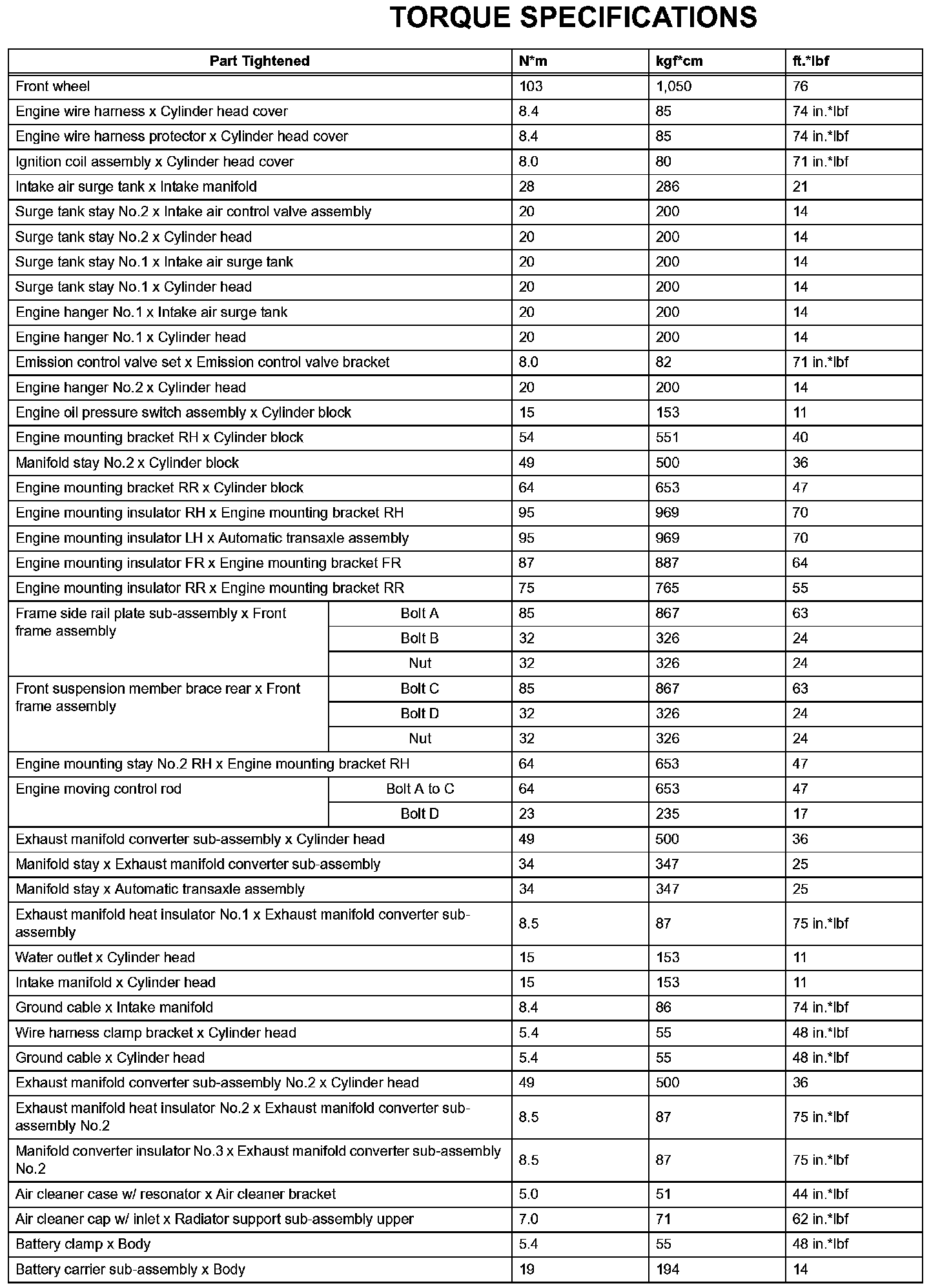 Engine Mechanical-Torque Specifications (Part 2):