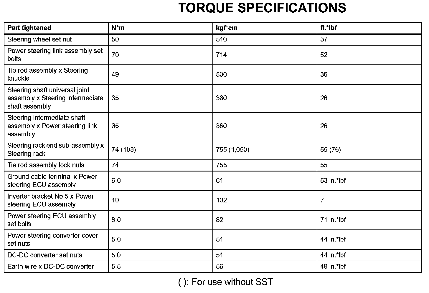 Power Steering-Torque Specifications: