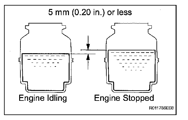 (f) With the engine idling, measure the fluid level in the reservoir.