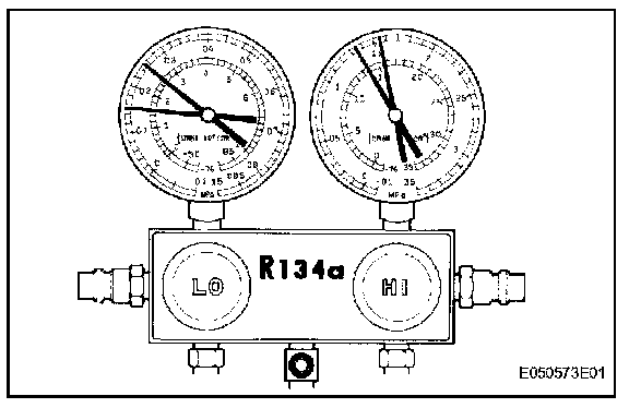 2. INSPECT REFRIGERANT PRESSURE WITH MANIFOLD GAUGE SET