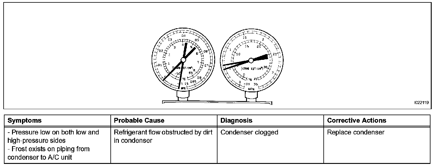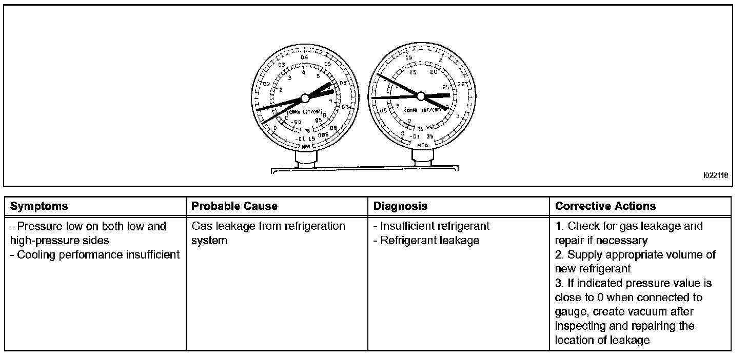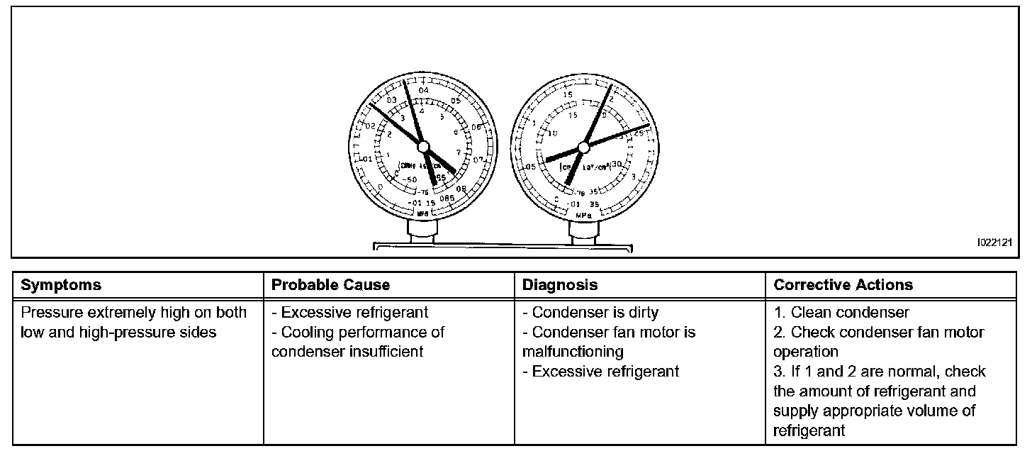 a. This method uses a manifold gauge set to locate problem areas. Read the manifold gauge pressure when the following conditions are established.