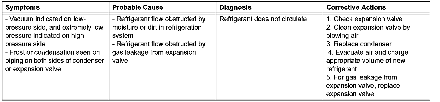 7. The A/C system does not function due to air in the refrigeration system.