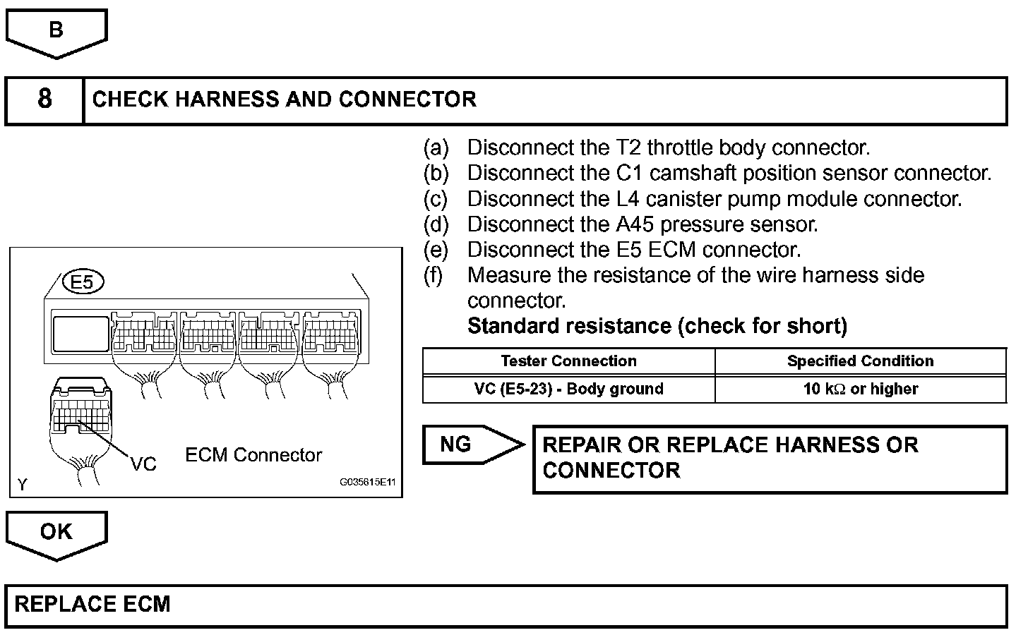 When the VC circuit is short-circuited, the microprocessor in the ECM and sensors that are supplied power through the VC circuit are deactivated because the power is not supplied from the VC circuit. Under this condition, the system does not start up and the MIL does not illuminate even if the system malfunctions.