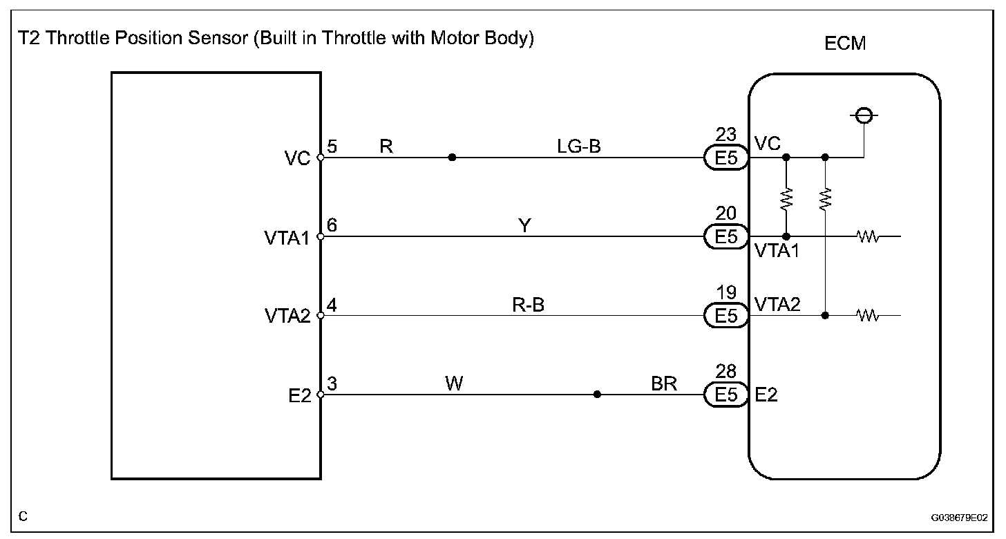 The ECM constantly generates 5 V power from the battery voltage supplied to the +B (BATT) terminal to operate the microprocessor. The ECM also provides this power to the sensors through the VC output circuit.