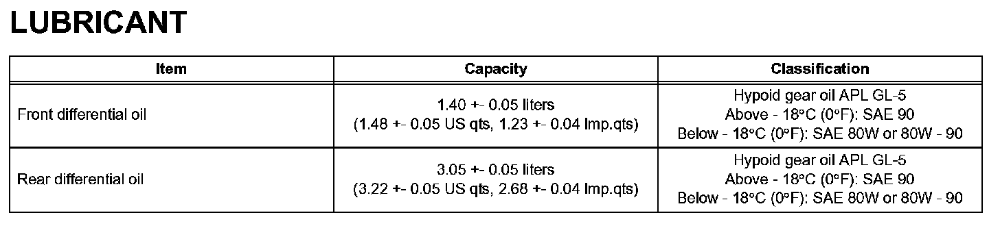 Differential - Lubricant: