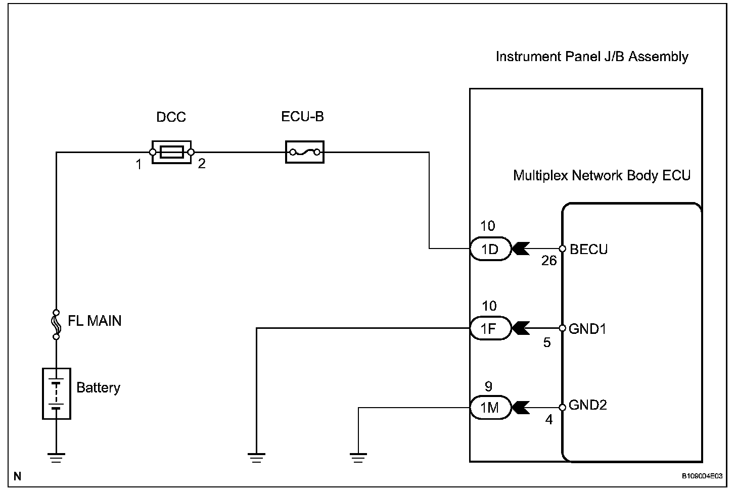 This circuit provides power for multiplex network body ECU operation.