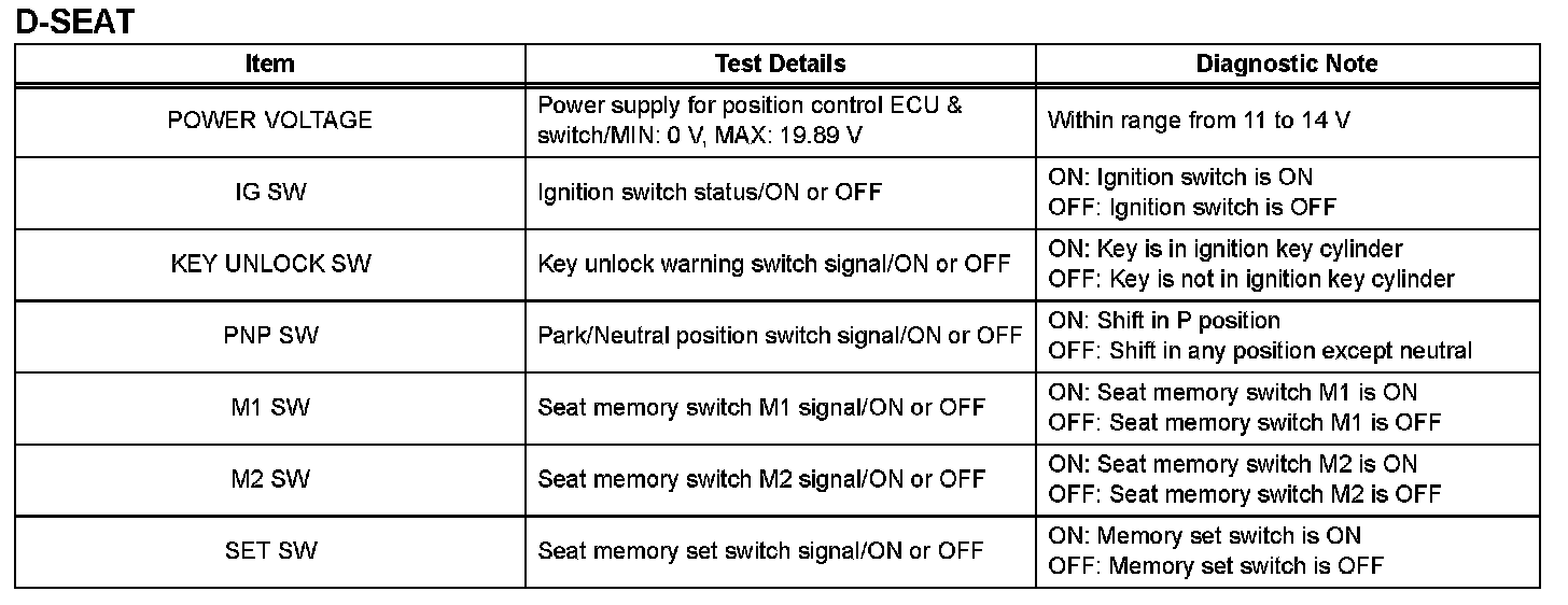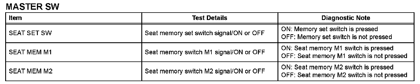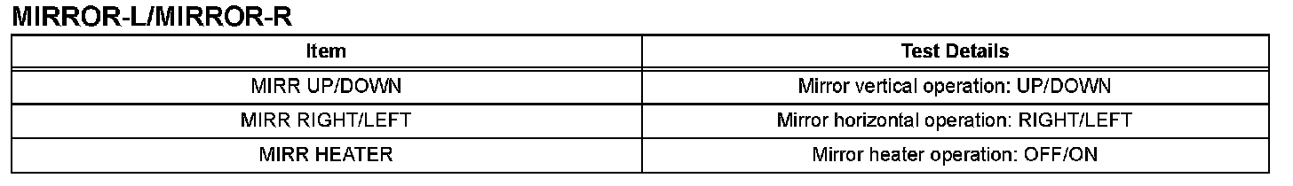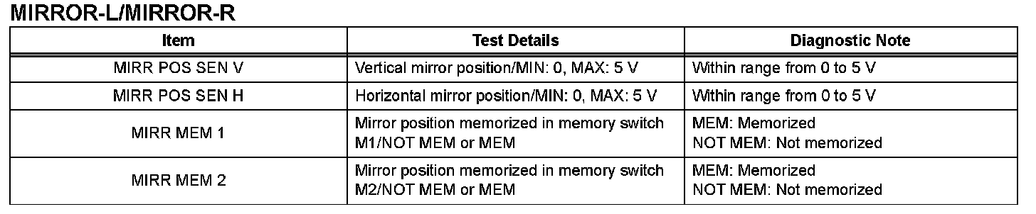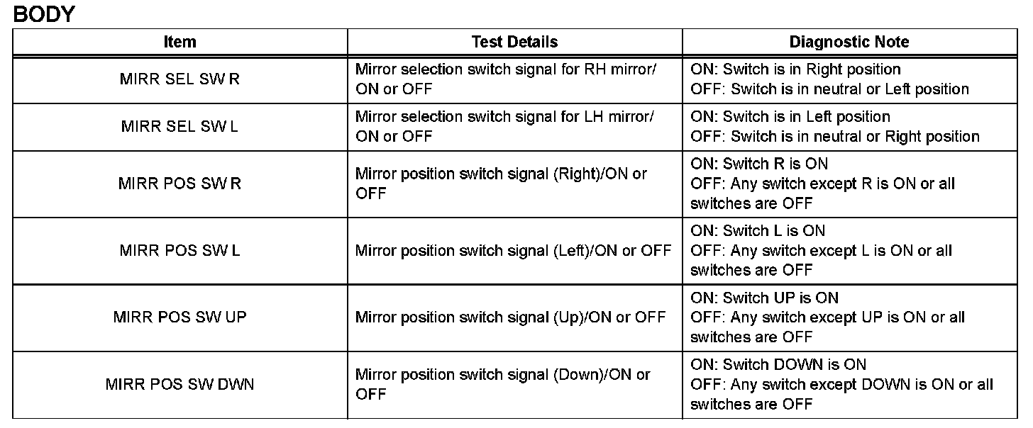 POWER MIRROR CONTROL SYSTEM (w/ Memory)DATA LIST / ACTIVE TEST