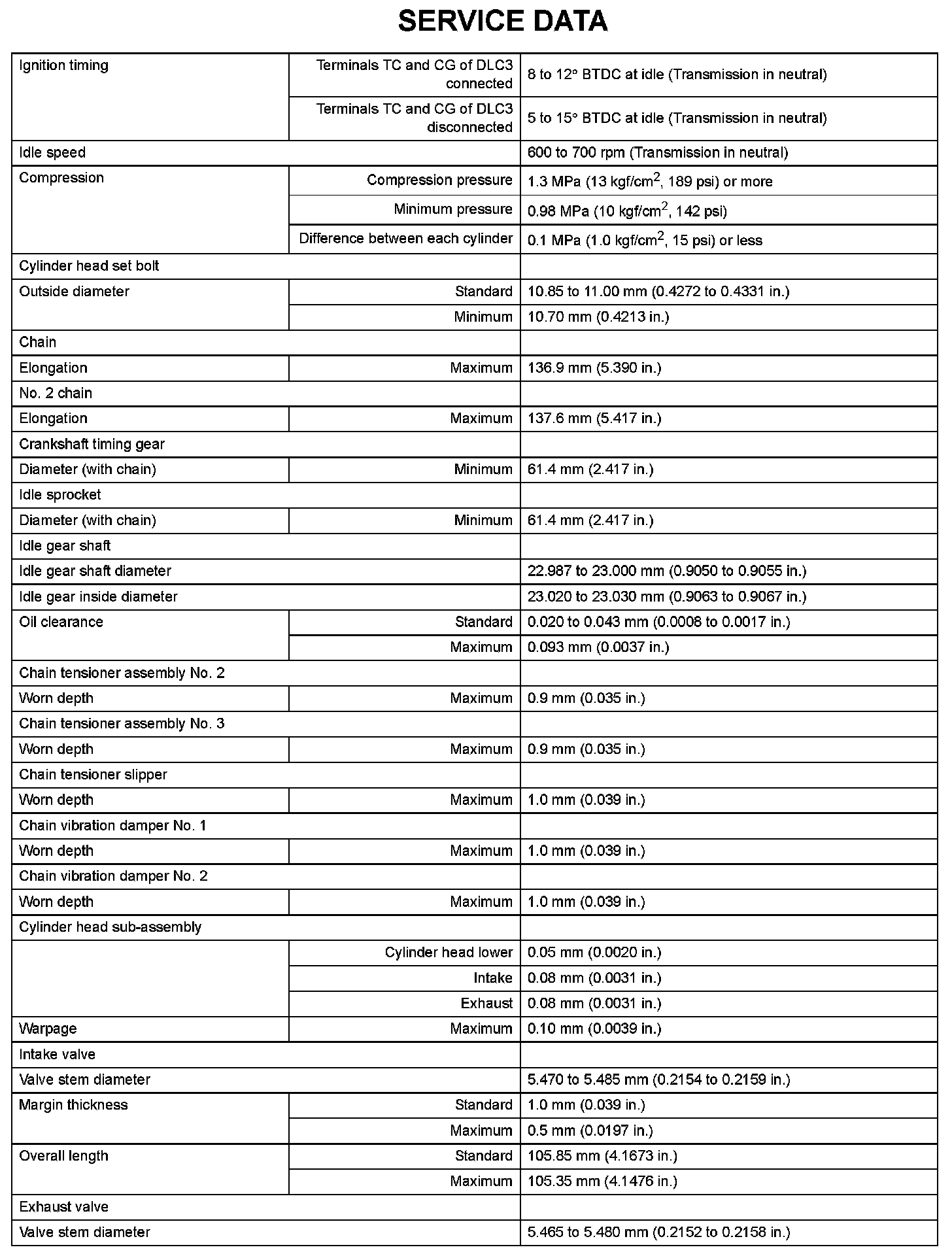 Engine Mechanical - Service Data (Part 1):