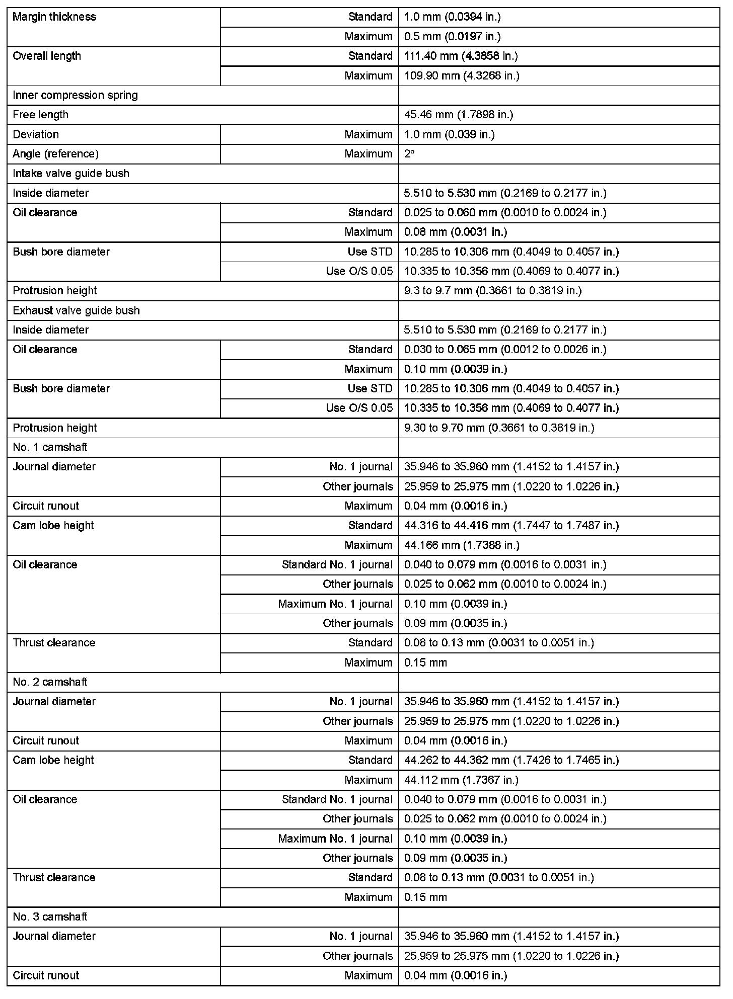 Engine Mechanical - Service Data (Part 2):