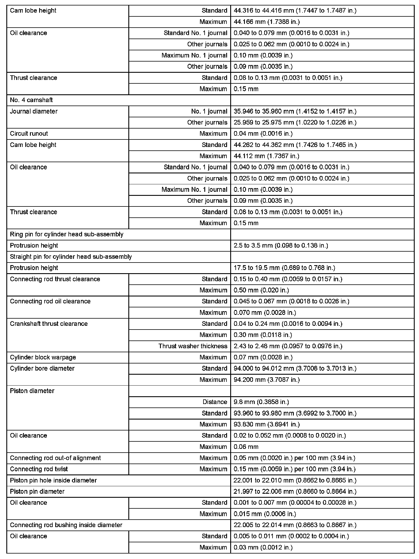Engine Mechanical - Service Data (Part 4):