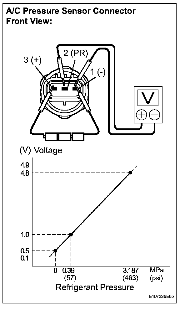 If the voltage is not as specified, replace the A/C pressure sensor.