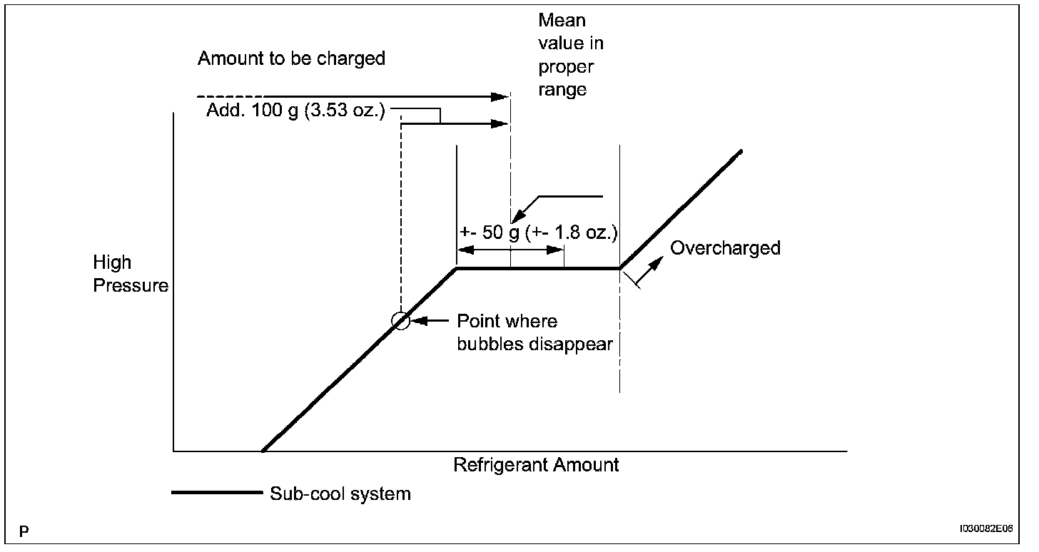 - Approximately 100 g (3.53 oz.) of refrigerant may need to be charged after bubbles disappear.