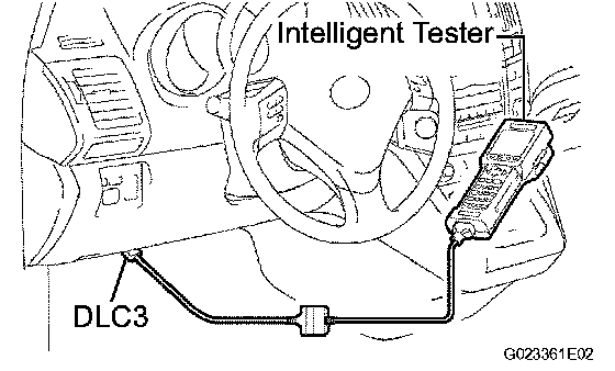 b. Connect the intelligent tester to the DLC3, then turn the ignition switch to the ON position.