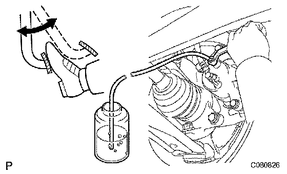 ^ During this procedure, the pedal seems heavy, but completely depress it so that the brake fluid comes out from the bleeder plug.