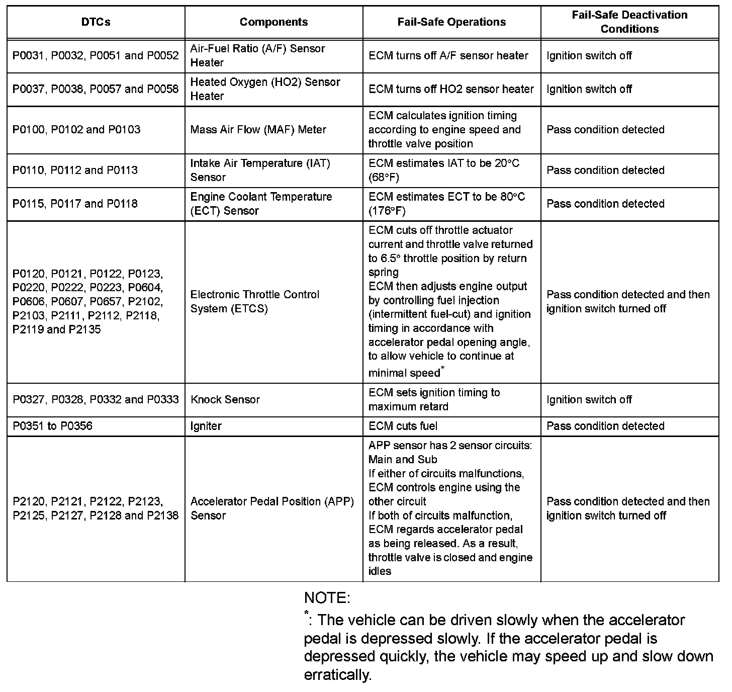 If any of the following DTCs are set, the ECM enters fail-safe mode to allow the vehicle to be driven temporarily.