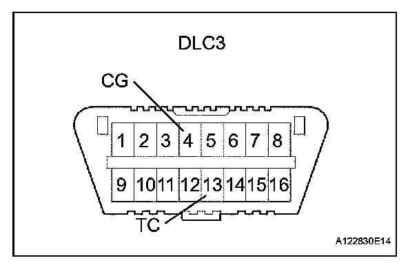 (6) Disconnect terminals 13 (TC) and 4 (CG) of the DLC3.