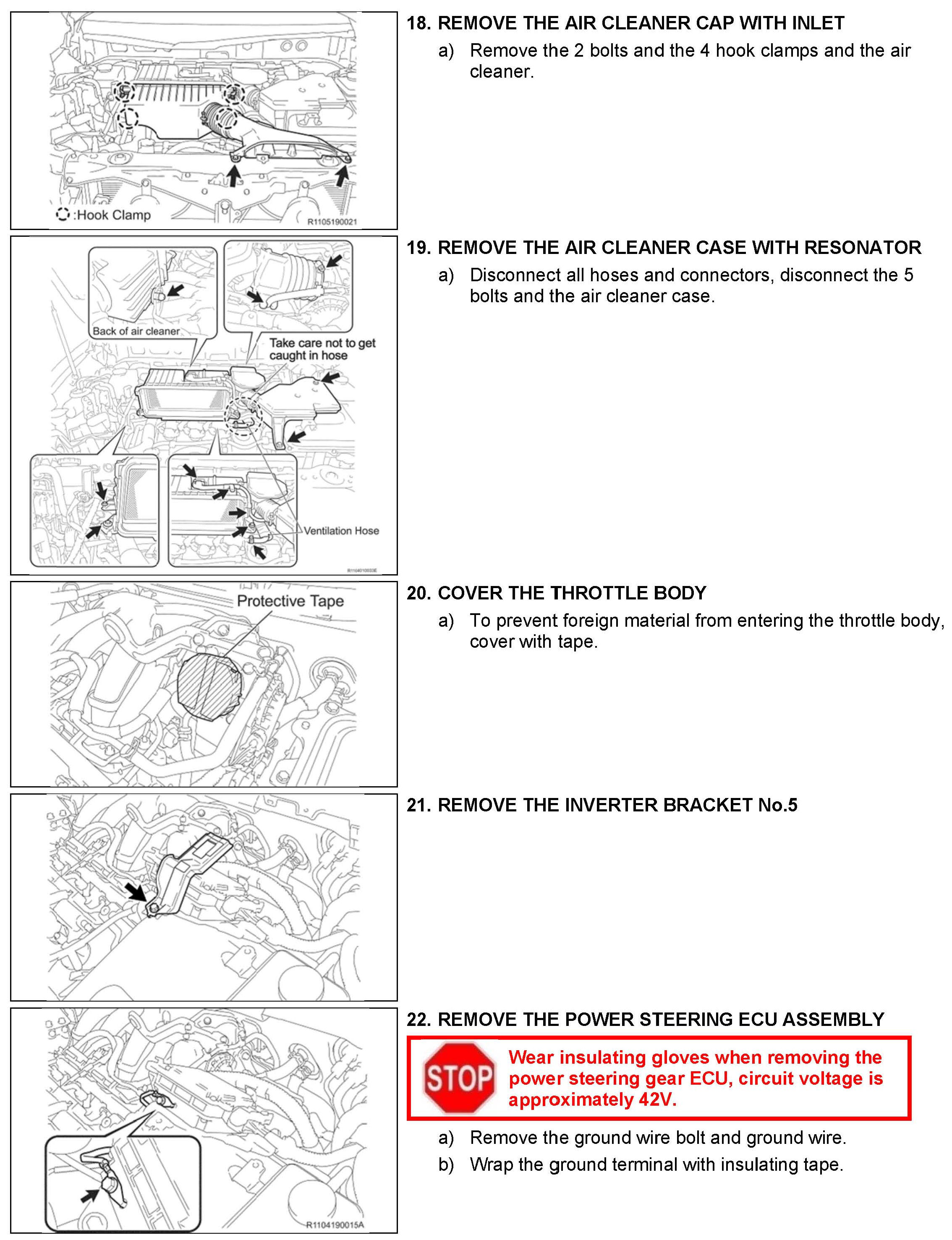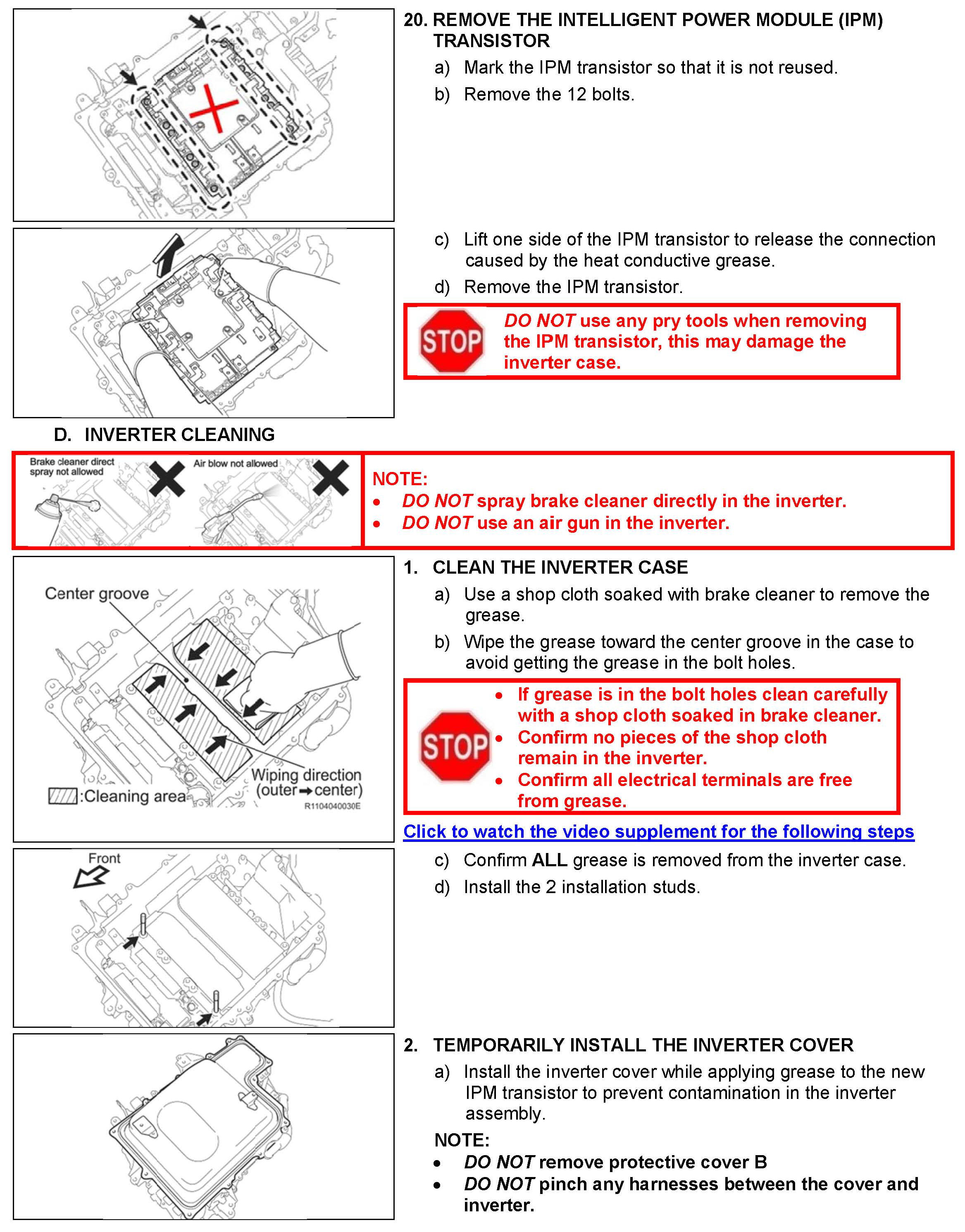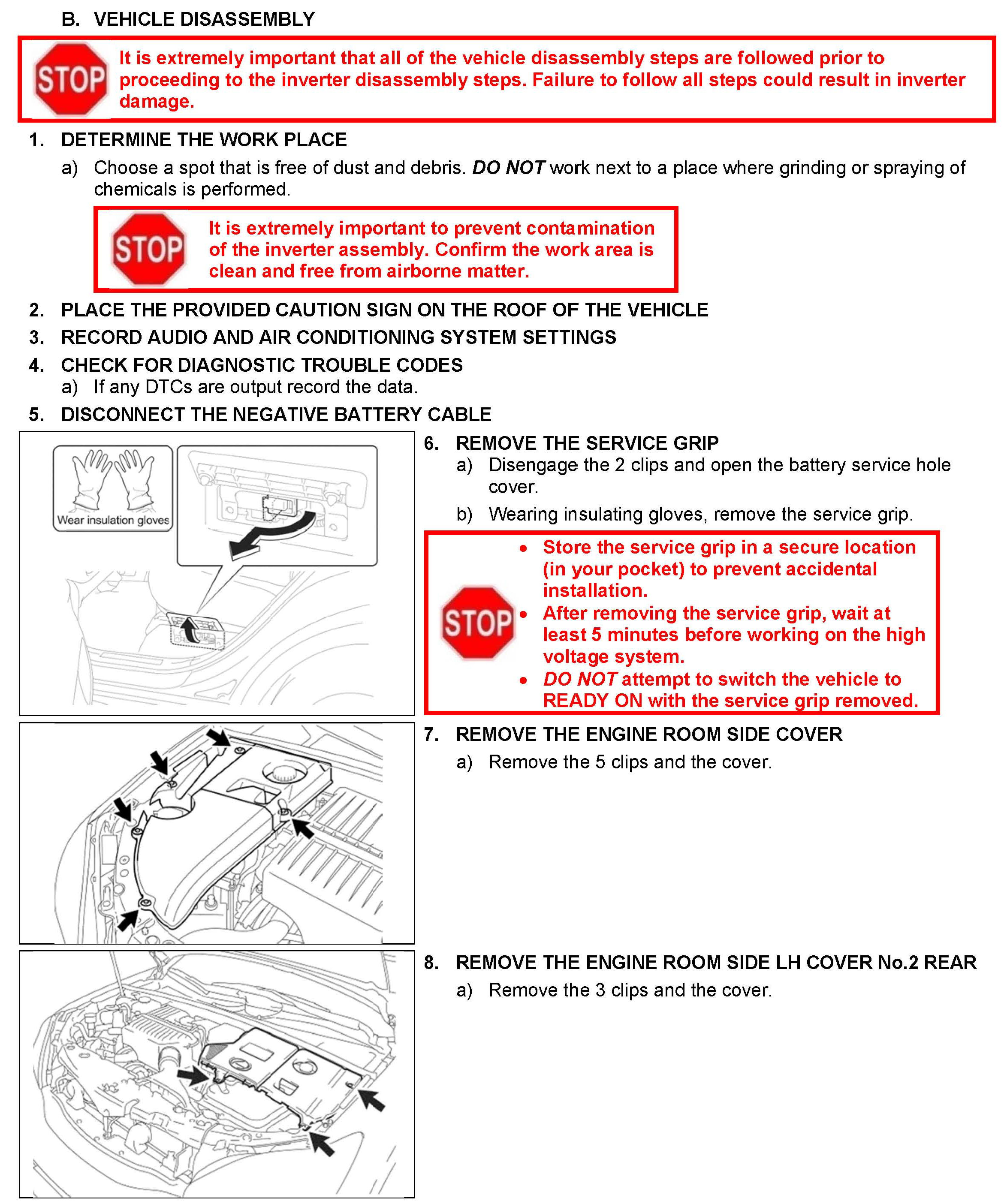 B. Vehicle Disassembly, C. Inverter Disassembly and D. Inverter Cleaning