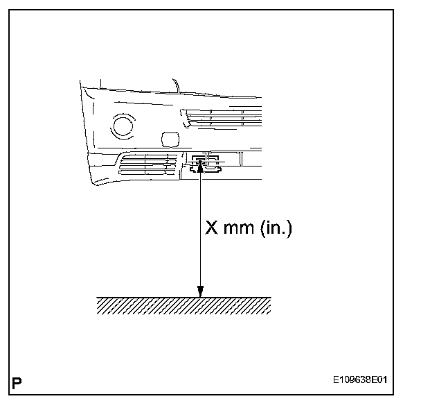 3. From the center (center of the emblem) of the front and rear bumpers, hang down the string with the plumb bob and mark the center points (both front and rear) of the vehicle on the ground surface.