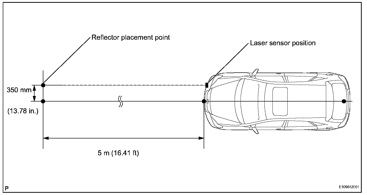5. From the 5 m (16.41 ft) marked position, measure 350 mm (13.78 in.) to the right and place the reflector there.