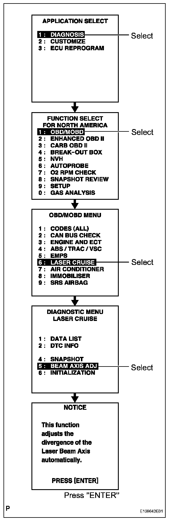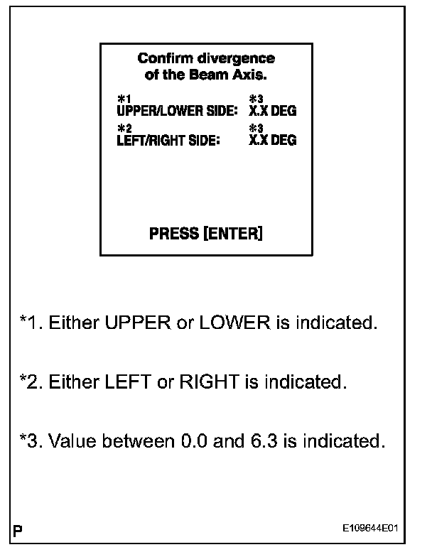 - Pressing the ''ENTER'' key will make the ECM transfer to BEAM AXIS ADJUSTMENT MODE.