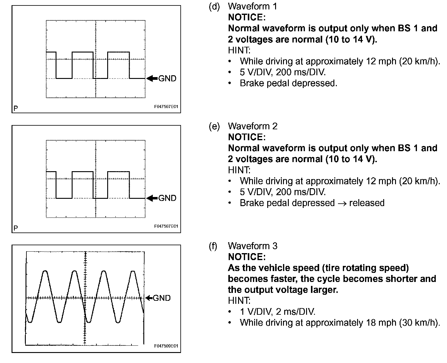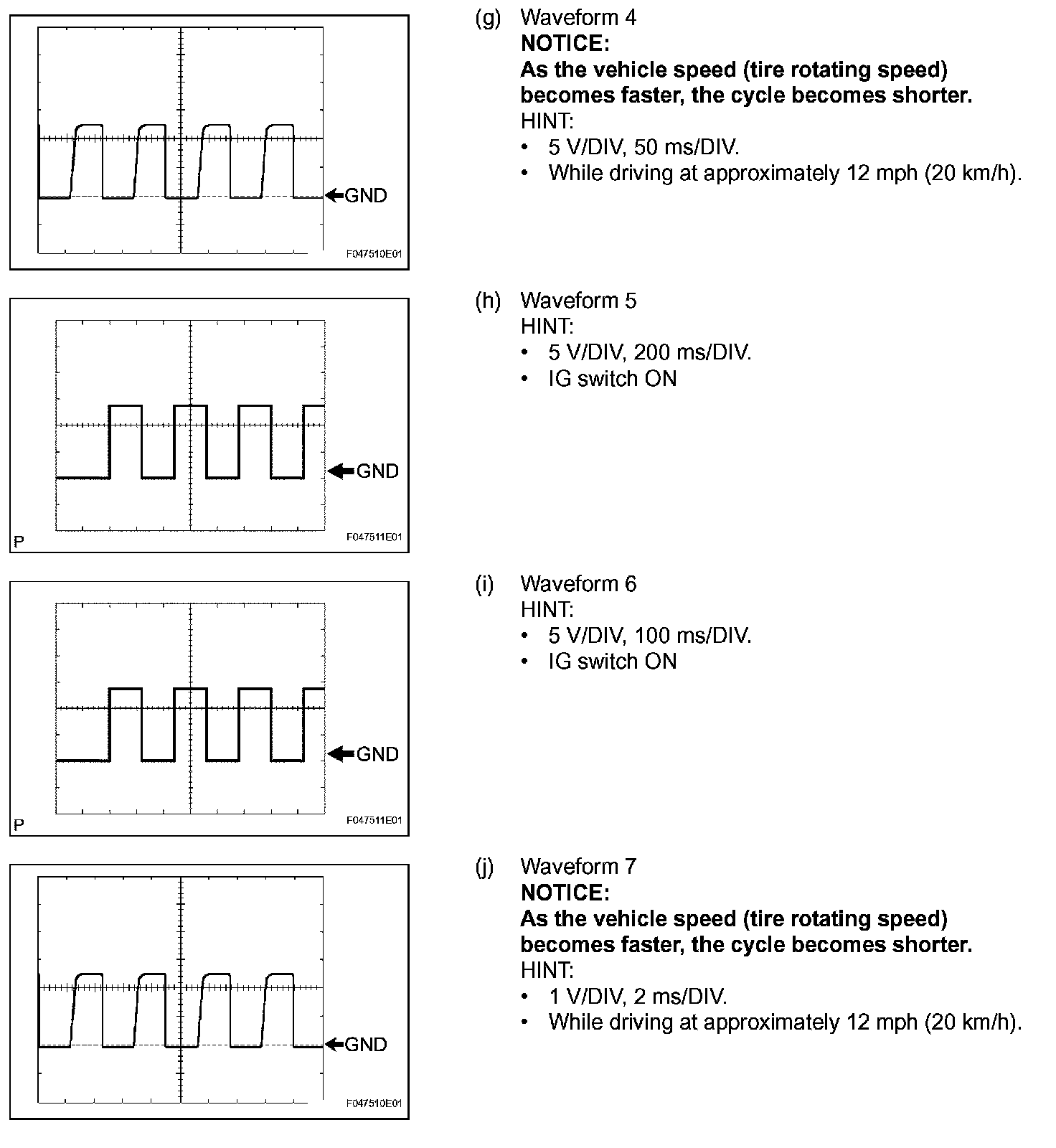c. Using an oscilloscope, check that the pulse generates between each terminal or between each terminal and the body ground.