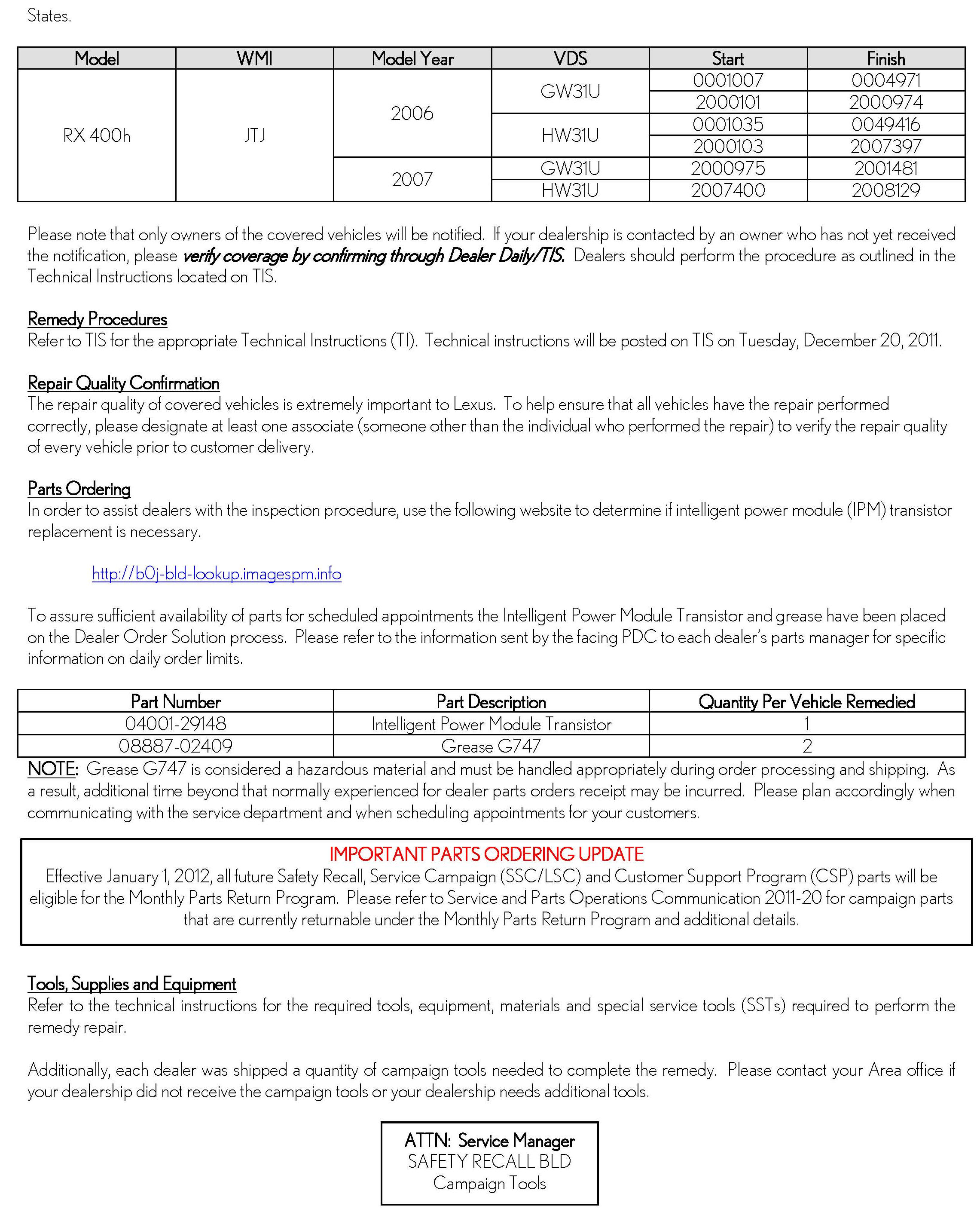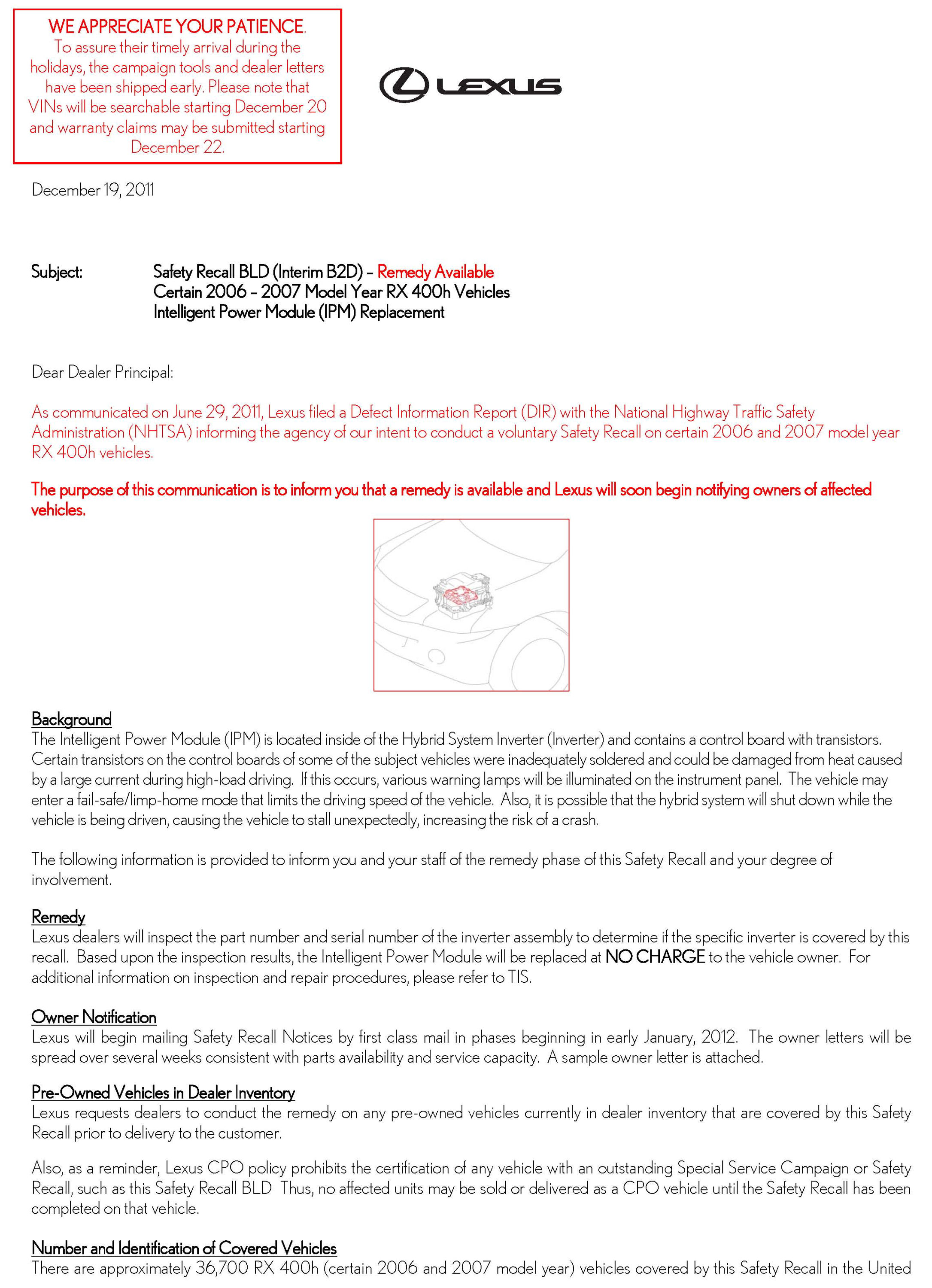 Recall - Intelligent Power Module Defect/Replacement