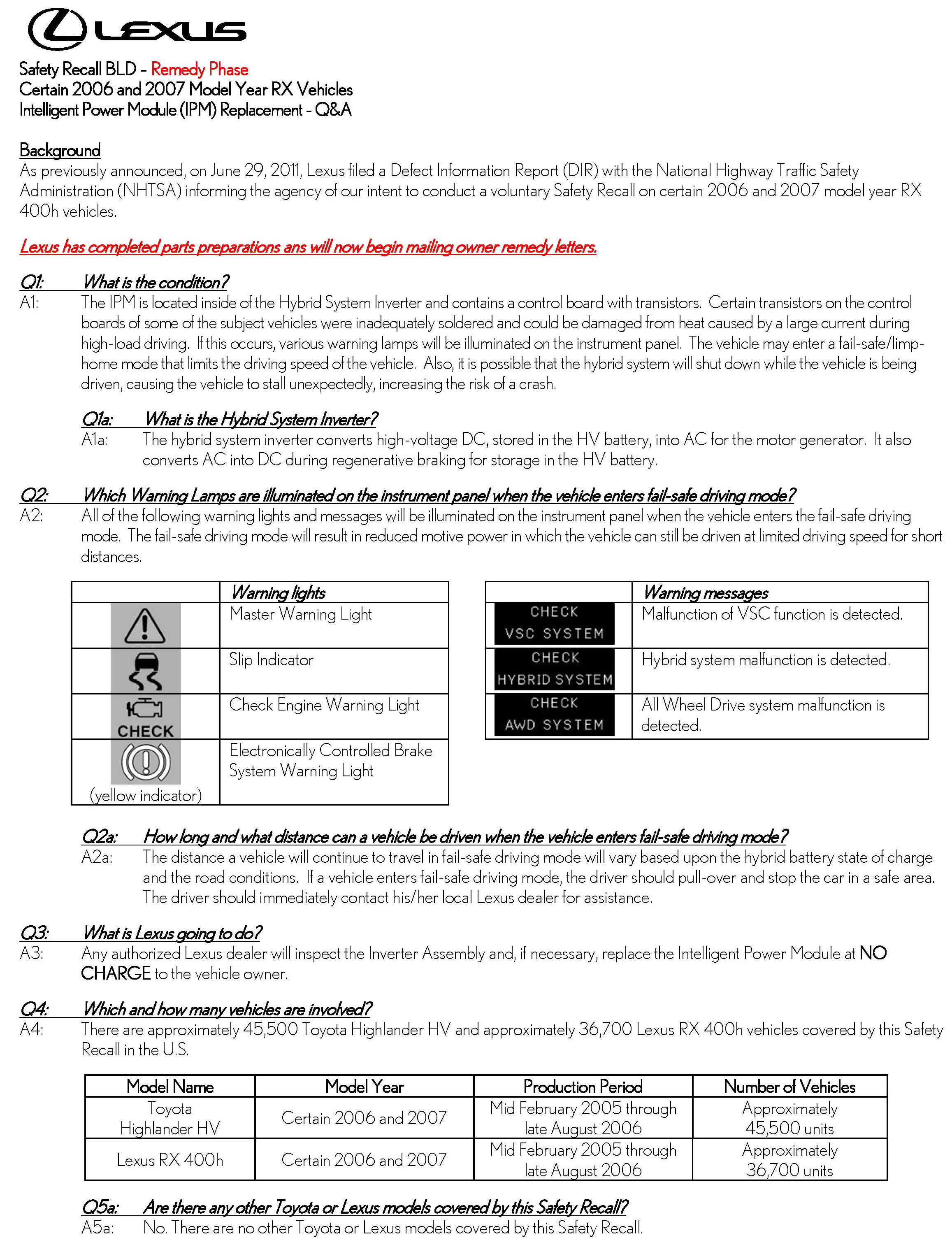 Recall - Intelligent Power Module Defect/Replacement