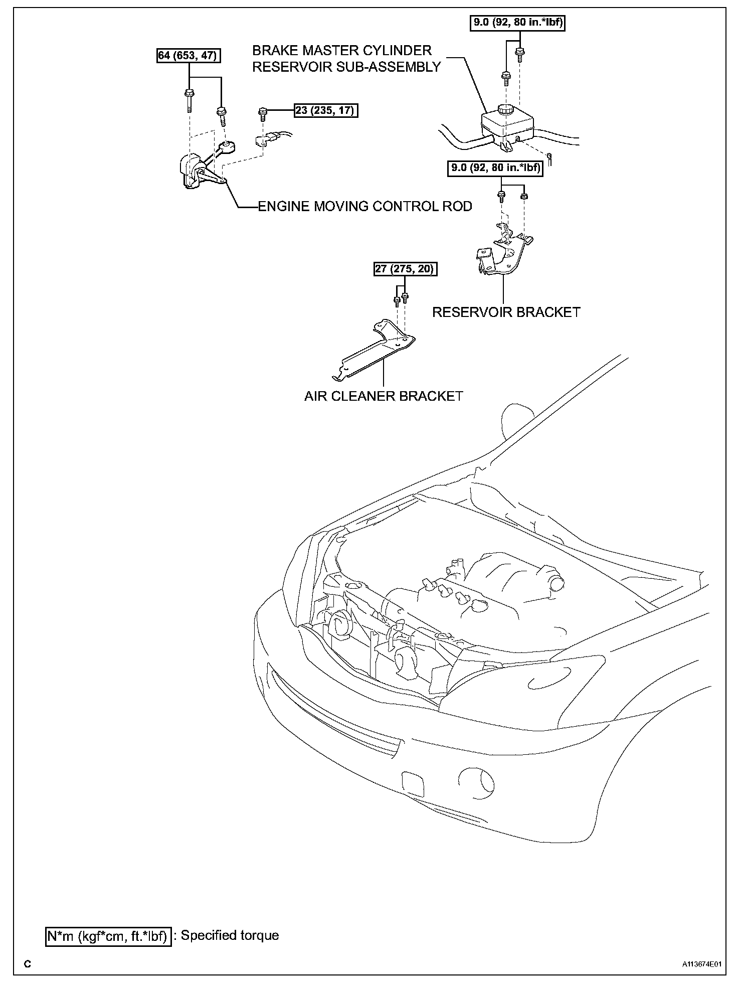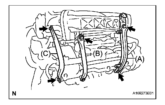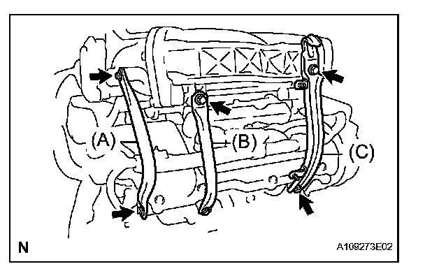 f. Install the engine hunger No.1 (C) with the 2 bolts.