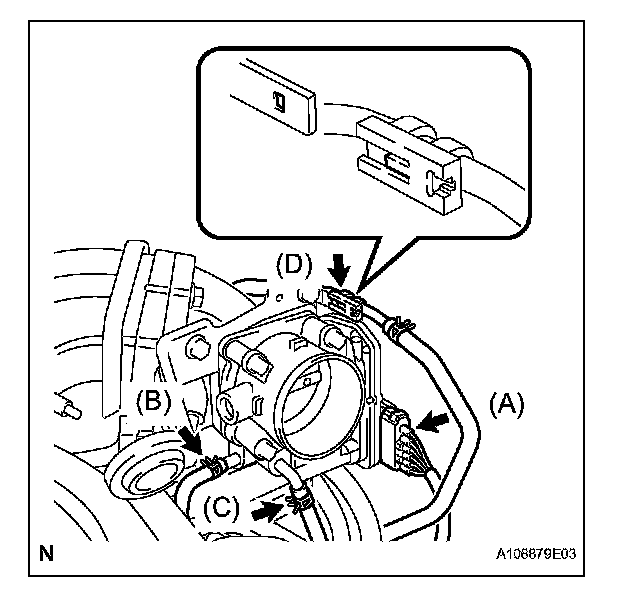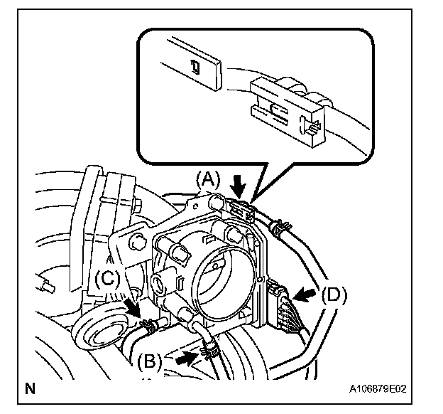 c. Connect the fuel vapor feed hose No. 1 (C).