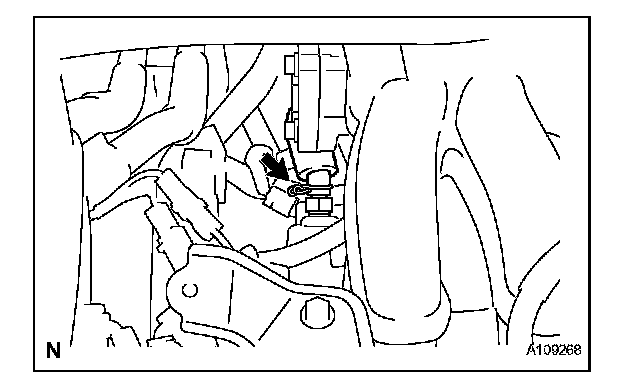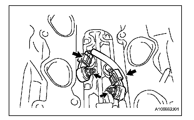 g. Remove the 2 bolts, then remove the surge tank stay No.1 (B).