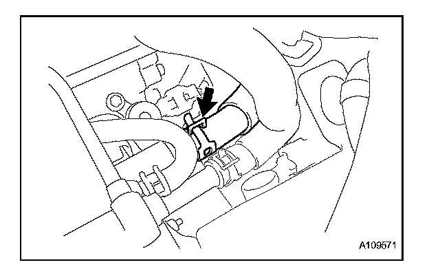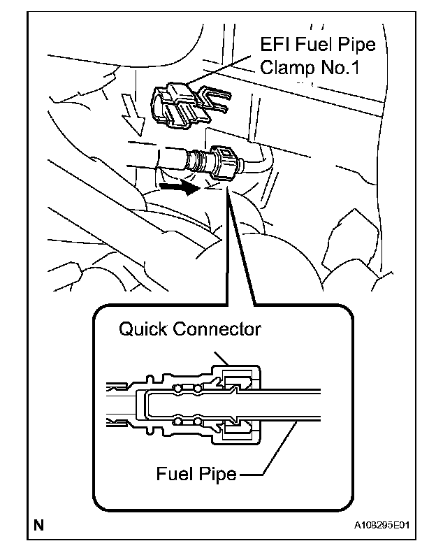 b. Pinch the quick connector and then pull out the fuel pipe No.1.