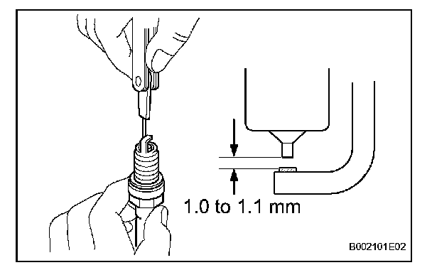 Correct electrode gap for new spark plug: 1.0 to 1.1 mm (0.039 to 0.043 in.)