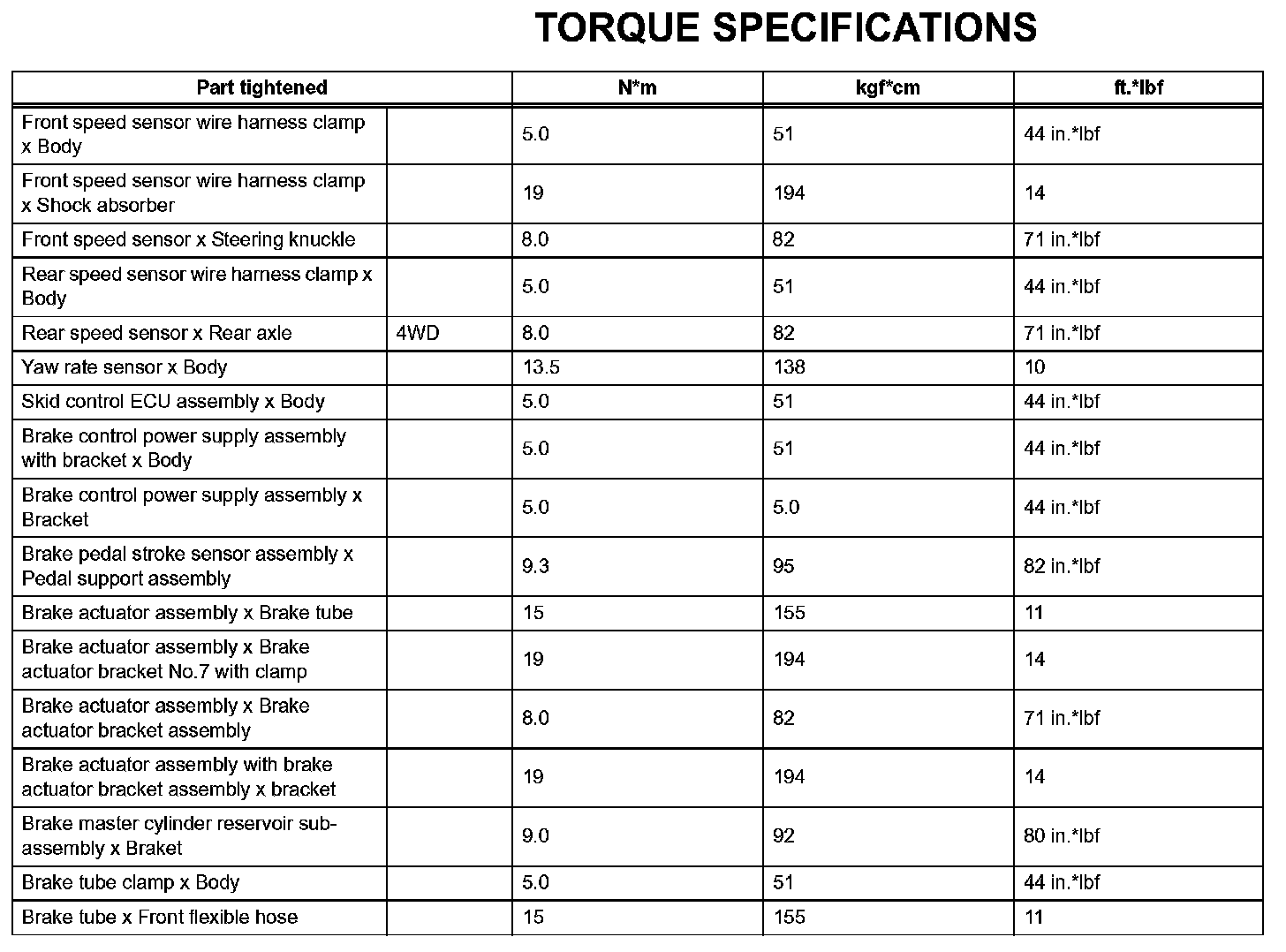 Brake Control - Torque Specifications:
